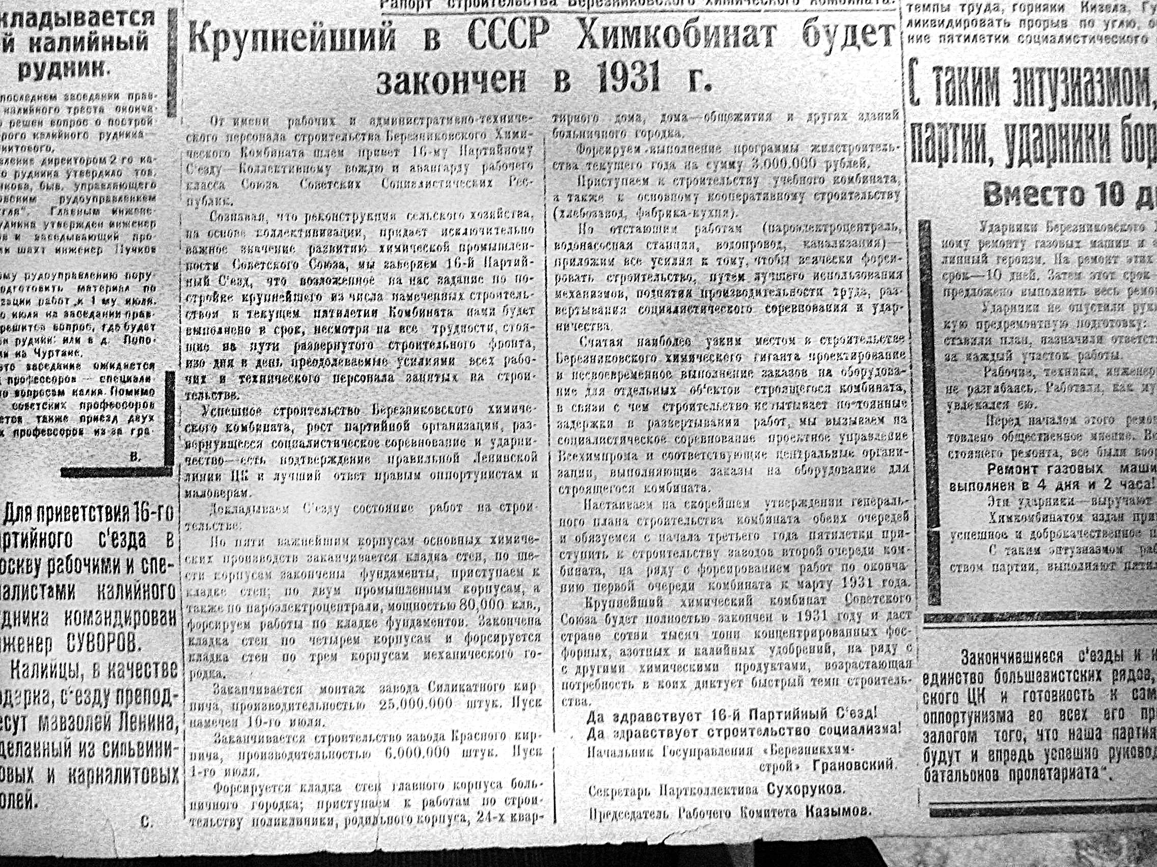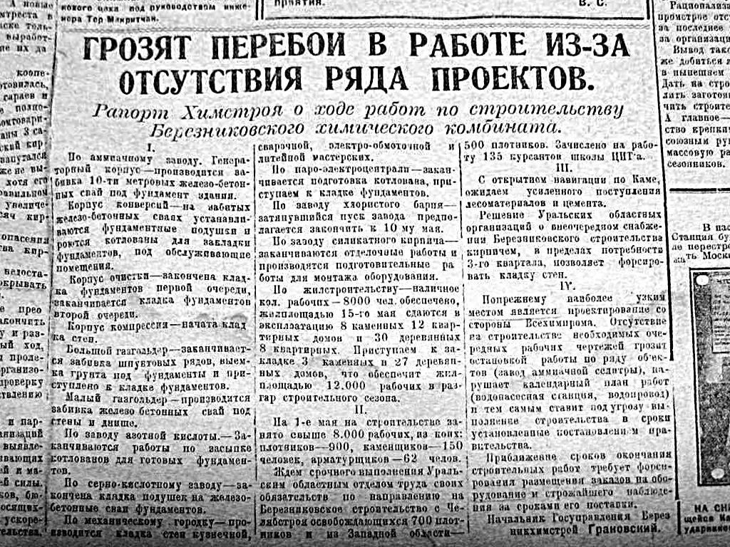Начнем с рапорта 16 съезду строителей ГХК. Упомянуто много моментов и есть дата, когда это было озвучено - газета Ударник 25 июня 1930 года. Часть городских событий приобретает конкретность во времени.