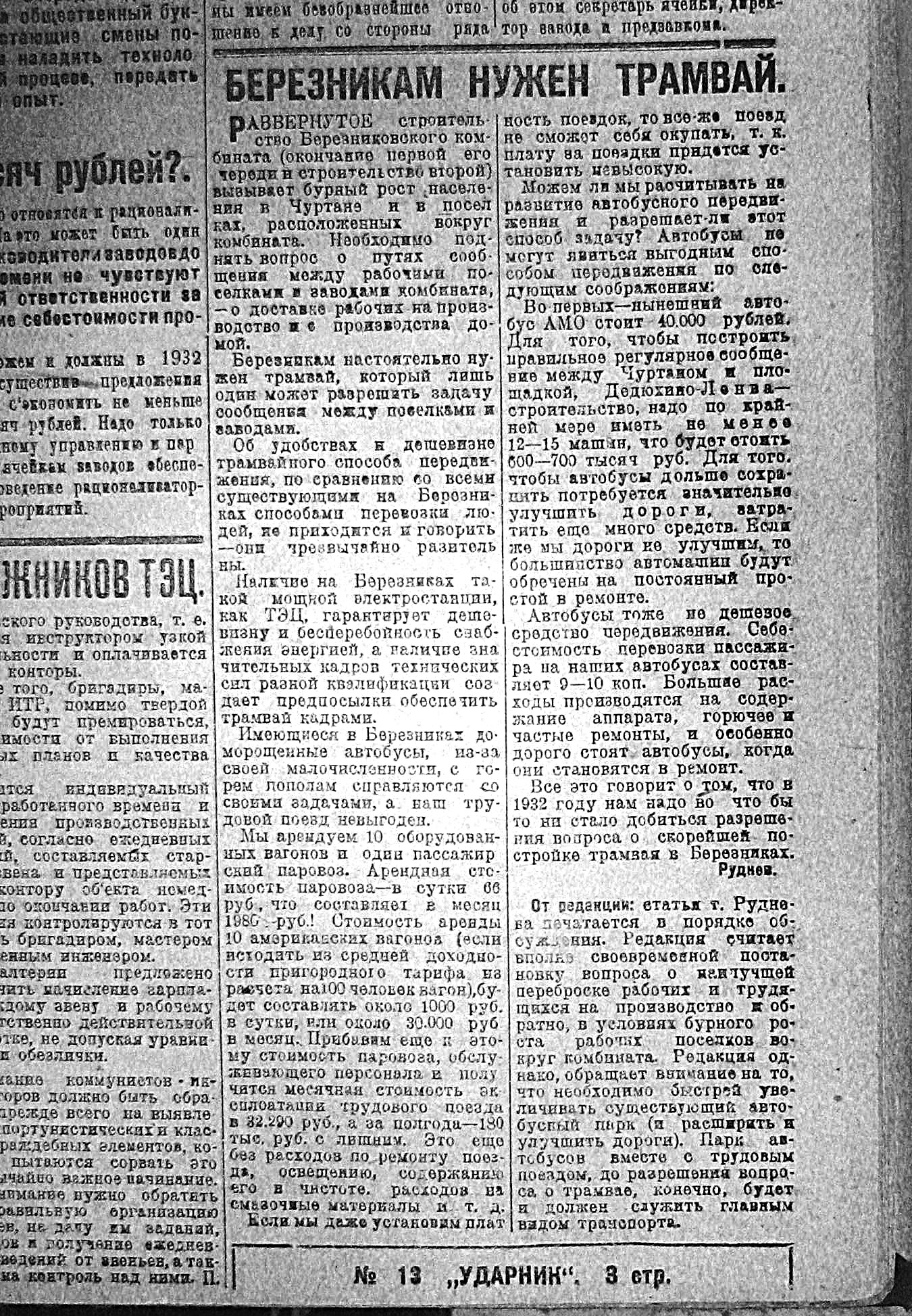 Даешь трамвай Березникам - Ударник 16 января 1932 года