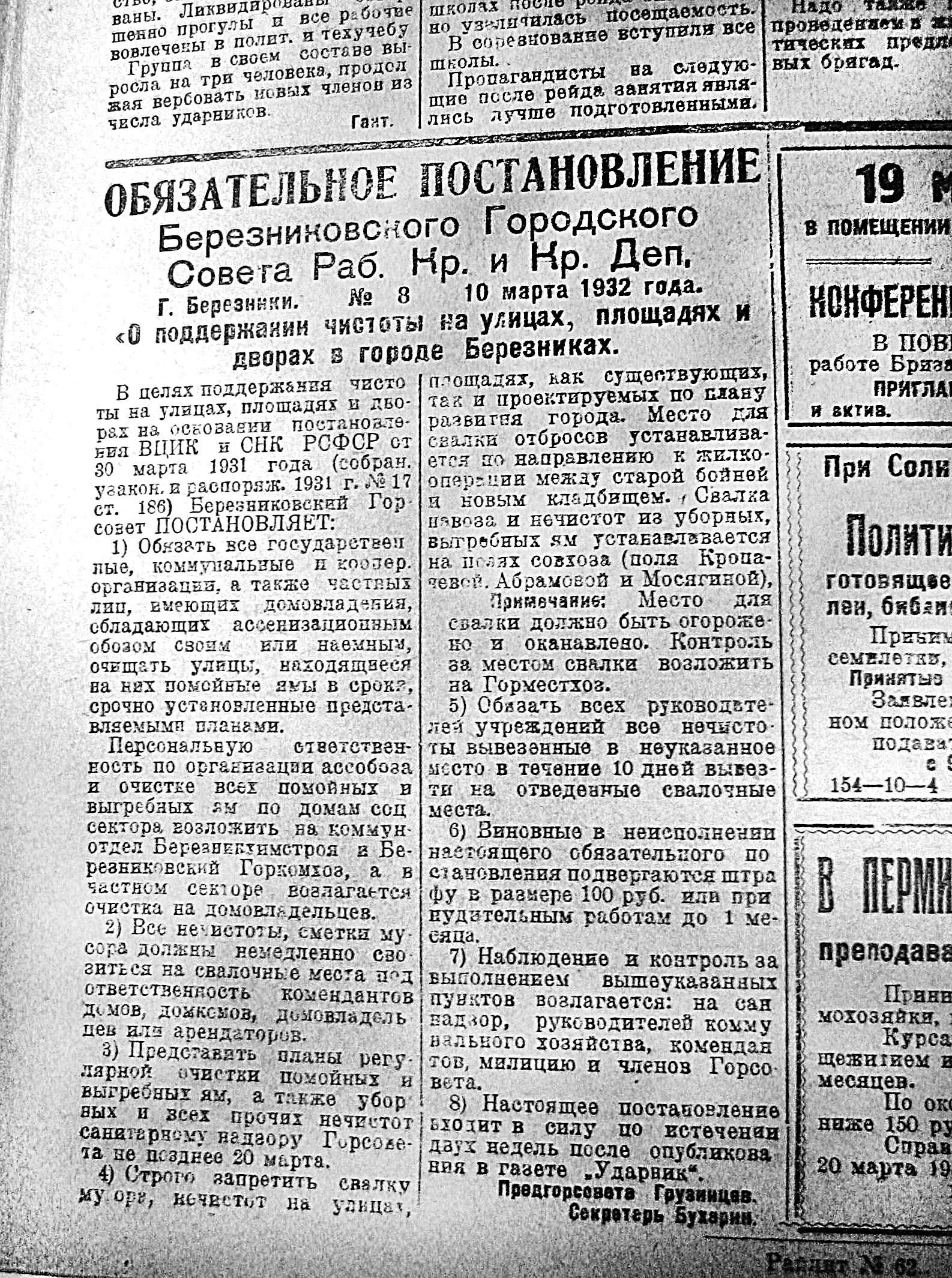 Порядок любили и в 1932 - Ударник 17 марта 1932 года
