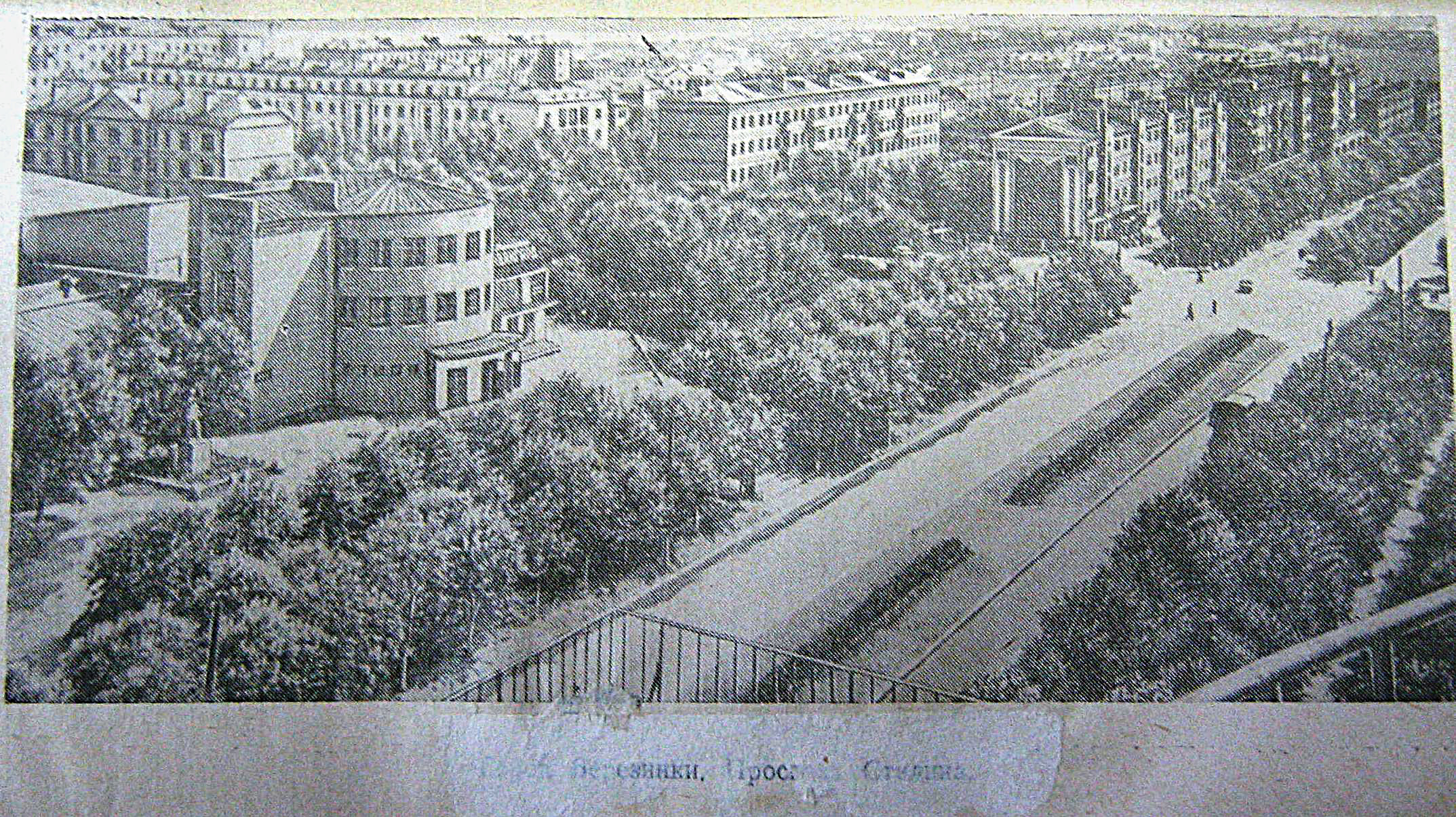 И приятная моему глазу фотография из книжки 1959 года (автор Ме(н,й)таджиев вроде) Снято из "Орлинного гнезда" на Сталина 43. В кадр попало ограждение крыши и поручень этого сооружения. И какой-то знакомый дядька-памятник у Авангарда. Как-то всё ровно и гладко выглядит... :insane: