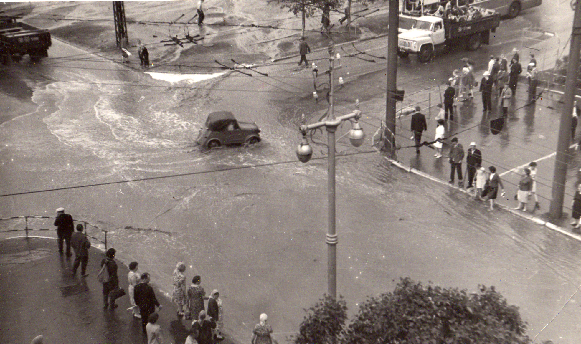 А вот фотка какого-то перекрёстка в Березниках. Снято было после сильного ливня. Машинка опять же "а ля дэу матиз". Я чё-т не могу опознать улицы. Может кто подскажет?