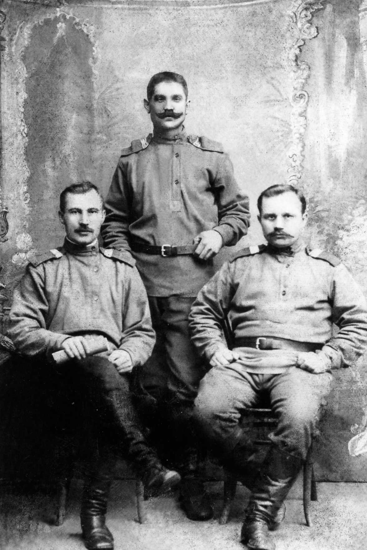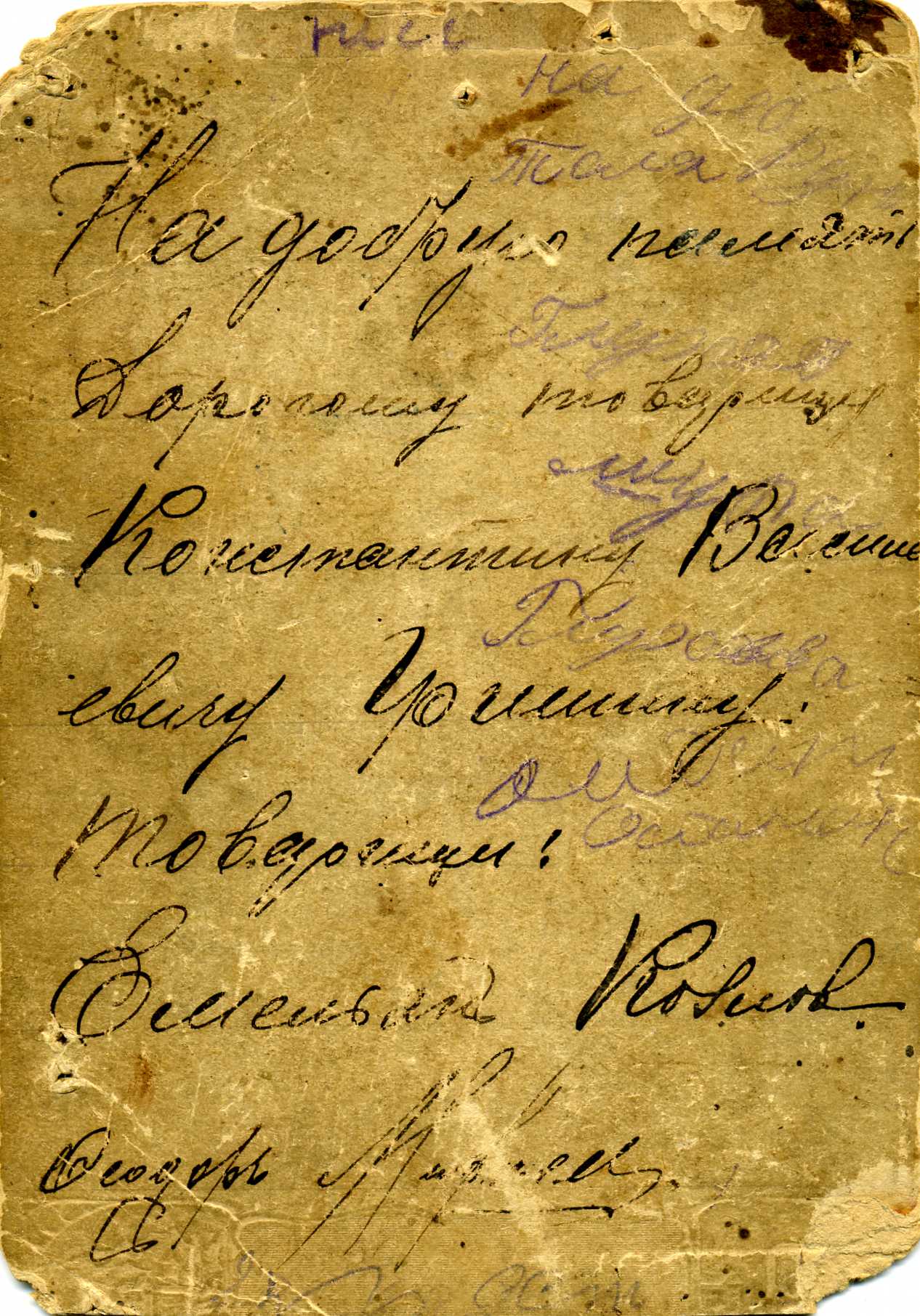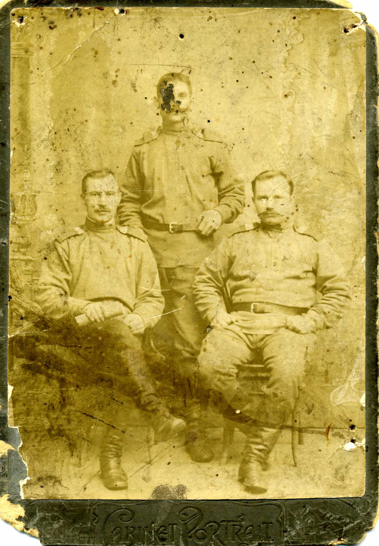 Помогите прочитать последнюю фамилию на четвертом файле. На групповой фотографии стоит мой родной дедушка, прапорщик царской армии. А сидят его товарищи по службе. Я про него ничего не знаю. Фотографии 1914 года. Второе фото, реставрация первого. Дедушка не местный. Он из г. Саратова. Обучался в Саратовском ветеринарном училище. Был большевиком. В 1919 году с товарищами организовали госпиталь при вновь созданном ветеринарном институте при советах, госпиталь по борьбе с эпидемией тифа. Заразился и умер. По словам бабушки был хороший человек, только пожить с ним не удалось. Бабушка потом вышла замуж за другого дедушку, с которым в 1931 году приехала в Березники на стройку. Не родной дедушка тоже был хорошим. Он работал в кинотеатре Авангард. Сначала строил, а потом работал. Всю жизнь пытаюсь разобрать последнюю фамилию на фото, но никак не удается. Возможно у того товарища есть родственники. Вот было бы здорово их найти. Помогите, пожалуйста. У меня есть еще несколько фоток про старый город. Покажу позже. post-48885-0-09266600-1313842383_thumb.jpgpost-48885-0-84911400-1313842400_thumb.jpgpost-48885-0-42294200-1313842414_thumb.jpgpost-48885-0-80565500-1313842430_thumb.jpgpost-48885-0-11561200-1313842441_thumb.jpg