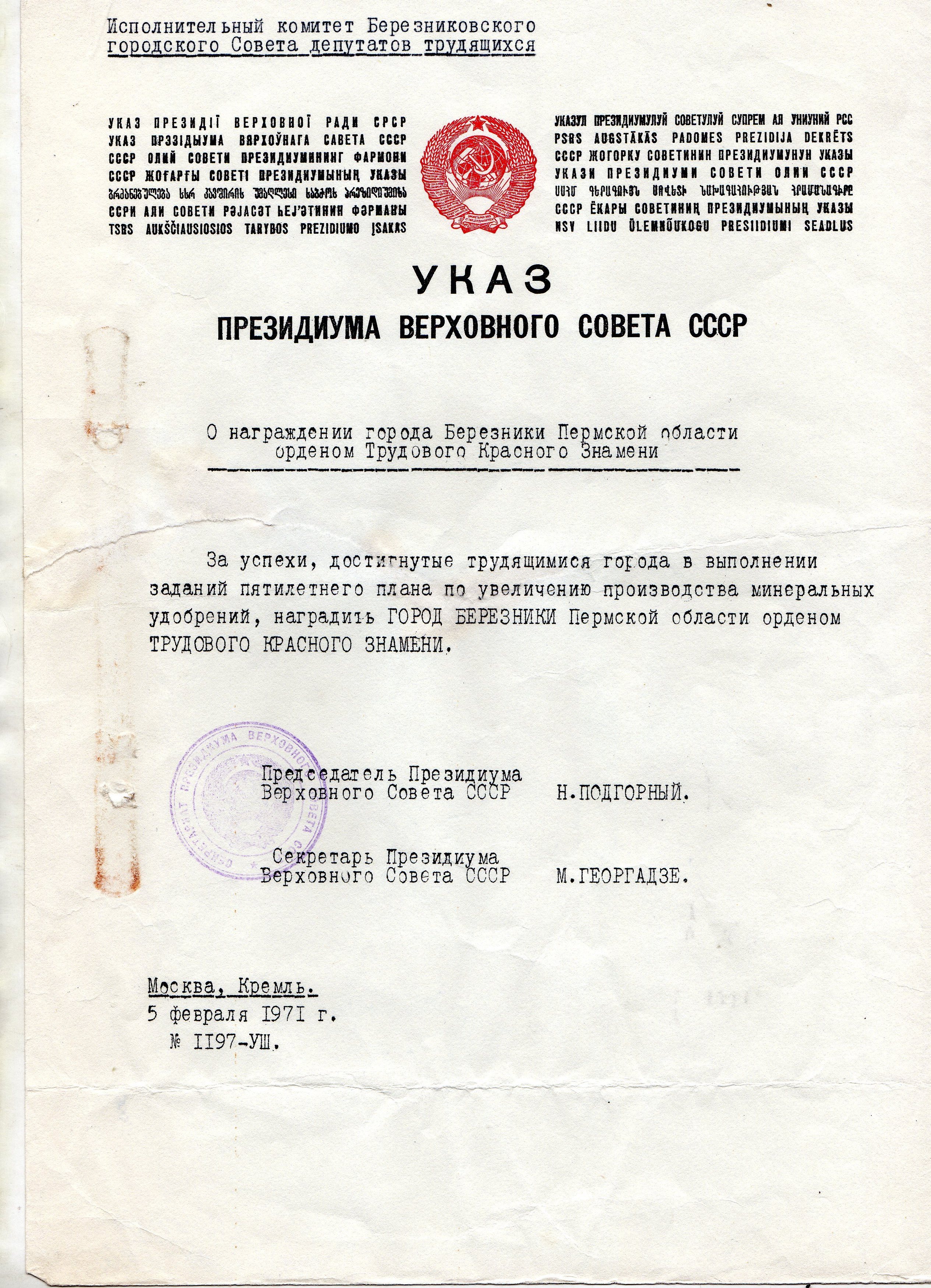 На городской архив узнать много об истории города надежда несбыточная. Директор этого архива Шишкина Фаина Федоровна, иногда пишет заметки в газеты. Да только материалов в архиве по истории города очень мало. Как объясняет Ф.Ф. городской архив это архив администрации города. Хотя и этого сказать о нем нельзя. Материалов работы городской администрации в большем объеме можно найти в краевом архиве. Смотря, что хочется узнать об истории города? Например историк и краевед Кульбиков С.И. добыл информацию, что "... о поселении Березники знали ещё в начале ХУП века. По писцовым книгам Кайсарова (1623-1624 годы) так обозначался монастырский Березниковский солеваренный промысел. Тогда на Березовом острове находились одна действующая варница и пустое варничное место. А в 1678-79 годах в слободке при Березниковском солеваренном промысле существовало уже более 32 дворов (нет данных о количестве дворов служителей, которых насчитывалось 22 человека) и 3 избы..." В 1764 году промысел был взят в государеву казну. Соляные промыслы в нашем районе в зависимости от экономического состояния на Урале, то затихали, то возобновлялись. Но факт существования поселения на Березовом острове, а при нем Березниковский соляной промысел, зафиксированы в исторических документах. Михаил Кайсаров, на документы (книги) которого часто ссылаются историки, не только советские, а и дореволюционные, как на достоверный источник информации, в то время, князь из Москвы, который Новгородским приказом был направлен, чтобы составить карту Соликамского уезда. Скорее всего для сбора податей. Это тоже из добытой исторической информации С.И. Для составления карты пришлось Кайсарову делать опись всех населённых пунктов, находящихся на территории уезда. Князь со своими людьми занимался этой работой два года. Опись составлялась вручную, как сами понимаете, в виде книг. Пока нам известны две книги. Говорят, что книги составлялись не в одном экземпляре. Это хорошо бы уточнить. И сколько на самом деле было книг - тоже? Так, перечисленные в книгах поселения обрели официальное подтверждение своего существования. Уезды объединяли несколько волостей. Центры волостей часто менялись, в зависимости от того, на сколько большим (весомым) было на тот период поселение. Книги Кайсарова показывают, сколь малочисленно было заселение в начале 16 века Северного Урала. Варничное место, действующая варница, починок, заимка, хутор, слободка, деревня, село - вот основной перечень упоминаемых в книгах пунктов и селений. Действующая варница могла находиться в отдалении от жилого помещения. Починок - возникающее селение. Слободка - поселение, временно освобождаемое от княжеских повинностей. Хутор - 1-2 жилых помещения (дома, двора) при освоении новых земель. Заимка - временный домик вдали от основного селения. Деревня - небольшое поселение с трёх дворов. Село - более крупное деревенское селение с церковью или помещечьей усадлбой. На сегодня пока все. Если интересно, можно продолжить.