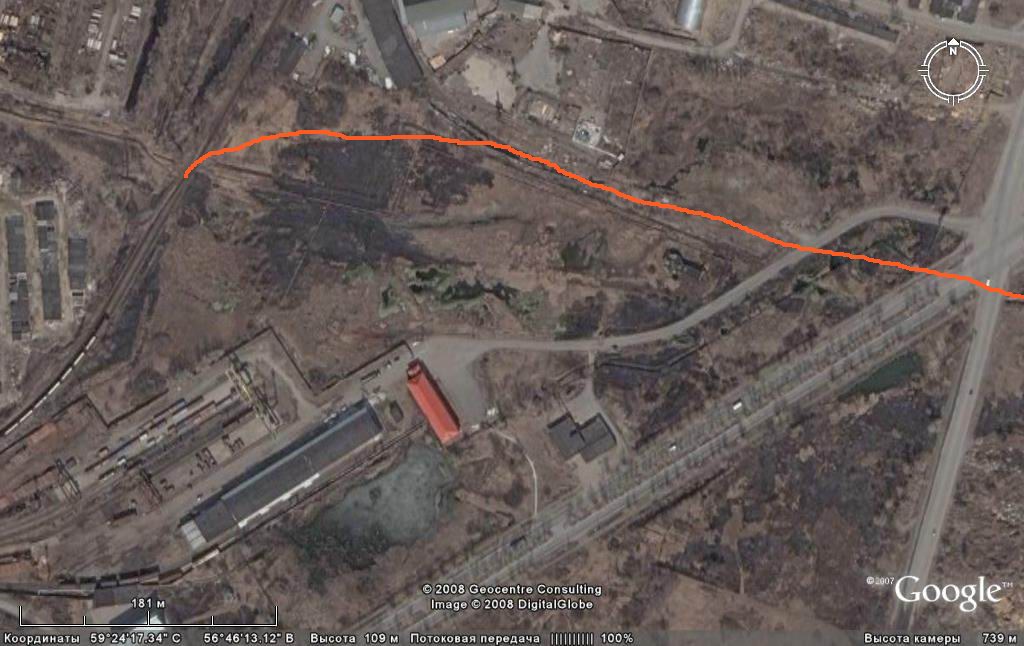 А куда идёт эта ветка... Вот если вправо - она с севера обходит главный корпус больницы, и идёт как раз на Пятилетку, где всё строительство и велось.