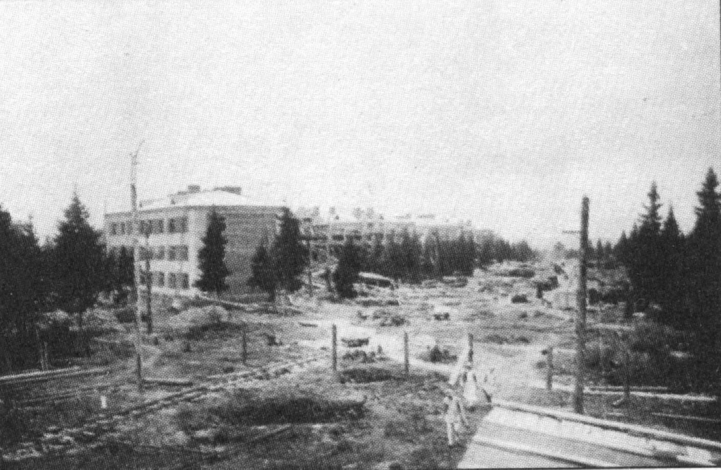 А вот ещё интересно - на заднем плане - труба торчит. Видимо, у больницы своя котельная была предусмотрена...