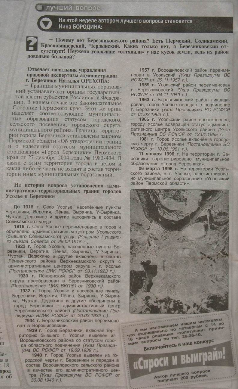 по Березниковскому району - вот какая статейка в последней Бернеделе O:) дама видать наш форум прочитала, и, отчаявшись узнать ответ, написала в газету O:)