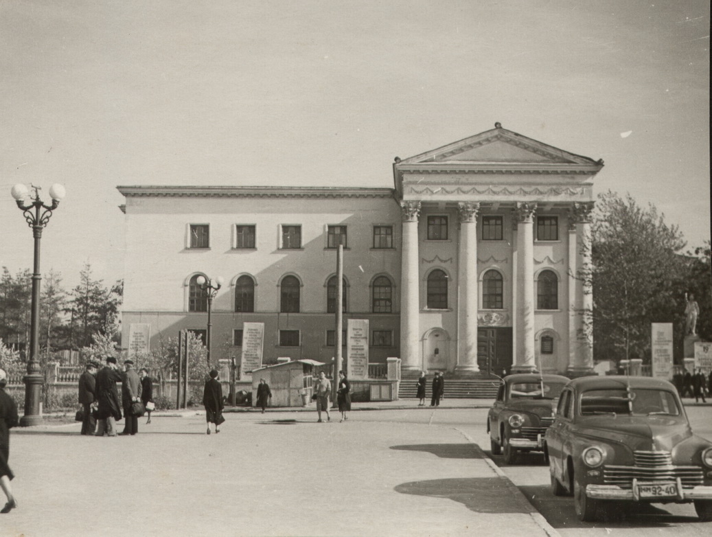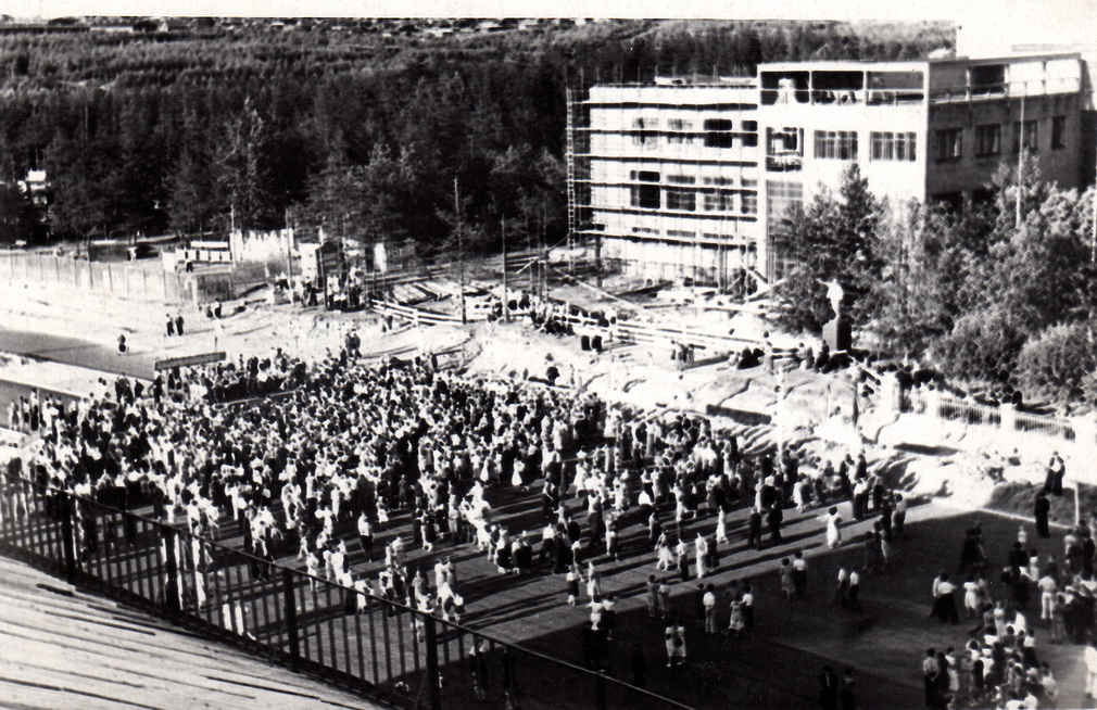 На фотке реконструкции ДК уже видно, что пр. Сталина продолжен вдоль парка. А вот скульптуры Сталина самого уже нет. Может его перенесли к Авангарду после сокращения территории парка?