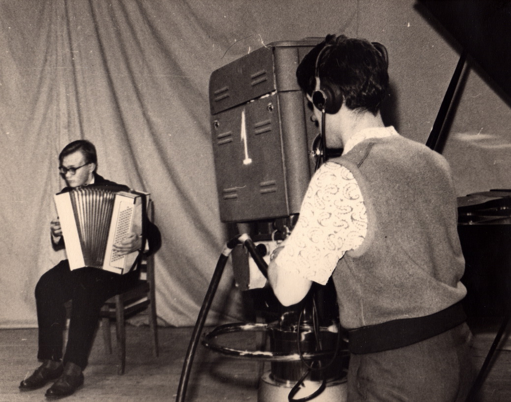 Первая пробная передача Березниковской студии телевидения слева директор телецентра Мохирев Петр