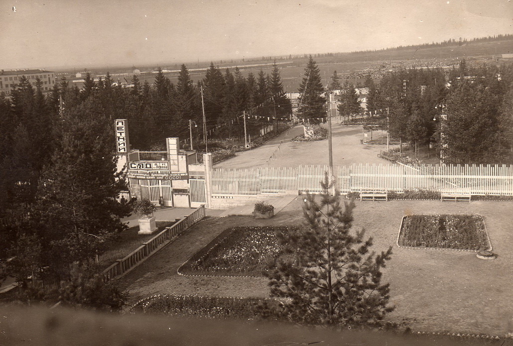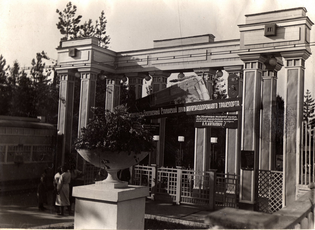 Общий вид на вход в Парк тоже был, но может иного качества. На каком-то снимке в кадр попадал угол ДК, с колоннами, которые ныне заложены. Не на этом ли снимке (общий план входа в парк)?