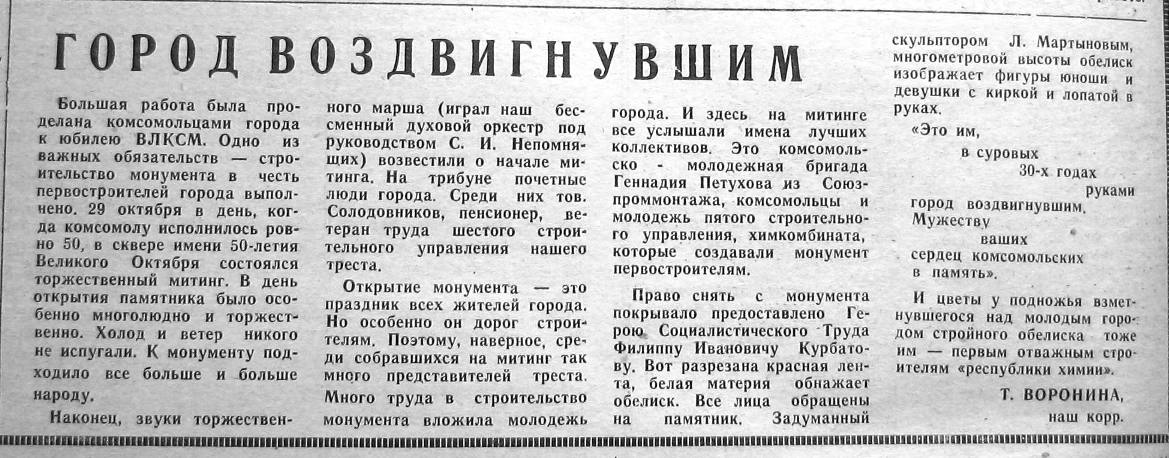 В свете завершающейся реконструкции Сквера у Первостроителей нашел несколько интересных моментов. История слов на монументе, имя автора, рассказ про открытие и начало строительства монумента. И выплыло из небытия какое-то название этого сквера - Имени 50-летия Великого Октября. :er:
