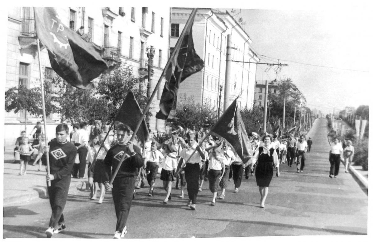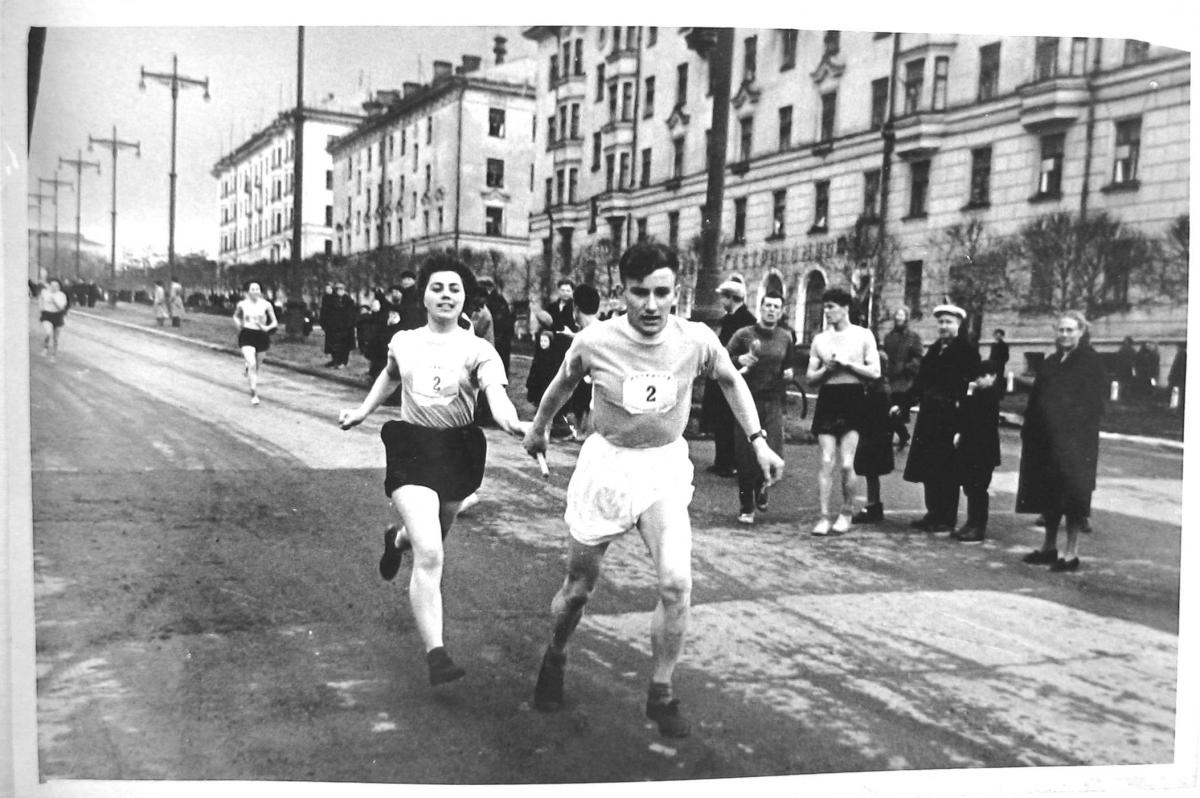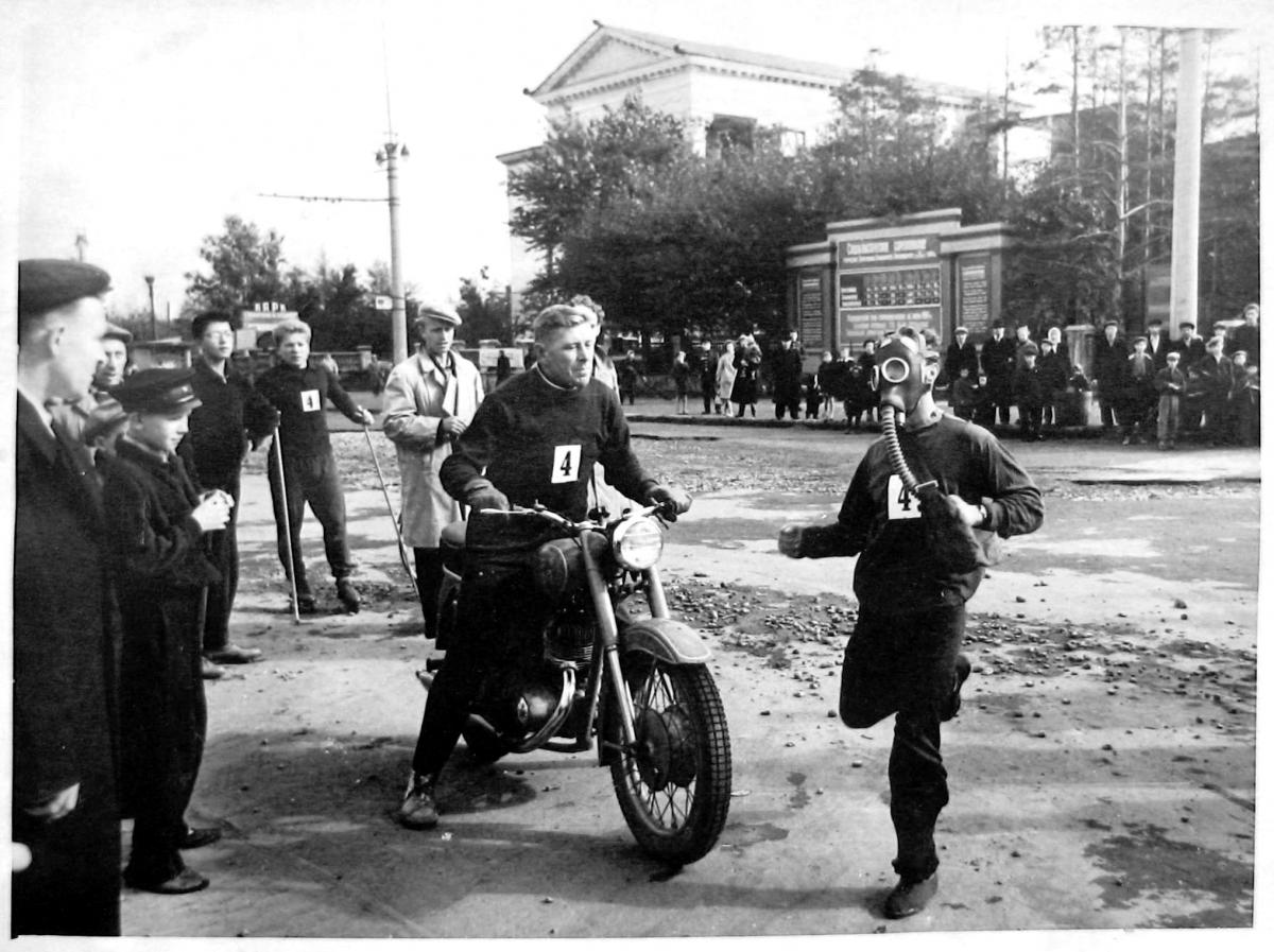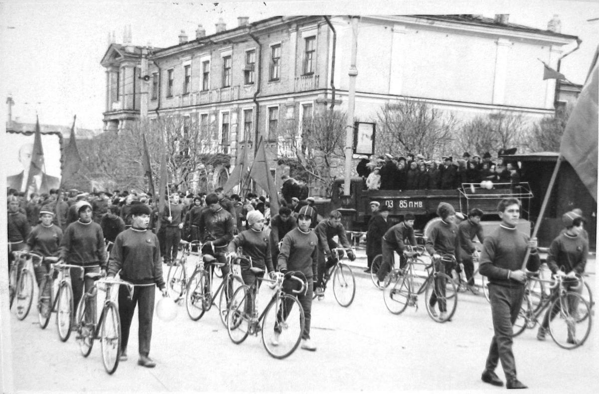 Парад участников на "Химике" - эстафета на приз БерРаба 1961 года и на этапах эстафеты - на СовПросе, на Ленина у дома 16, разворот у БКК-1, двухэтажный барак, который мелькал недавно в БерНеделе.