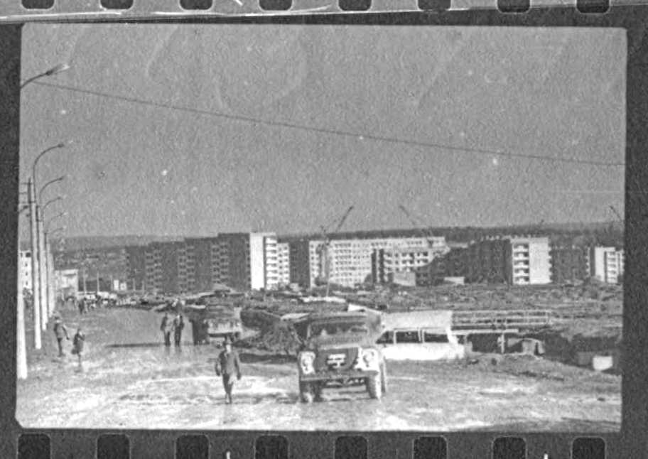 Других исходных данных нет, только фото. На фото бригада "Дорзеленстроя", который занимался сами знаете чем, предполагаю дату снимков - середина 70-ых... На первом фото пока думаю ул. Ленина дома №33 и №35