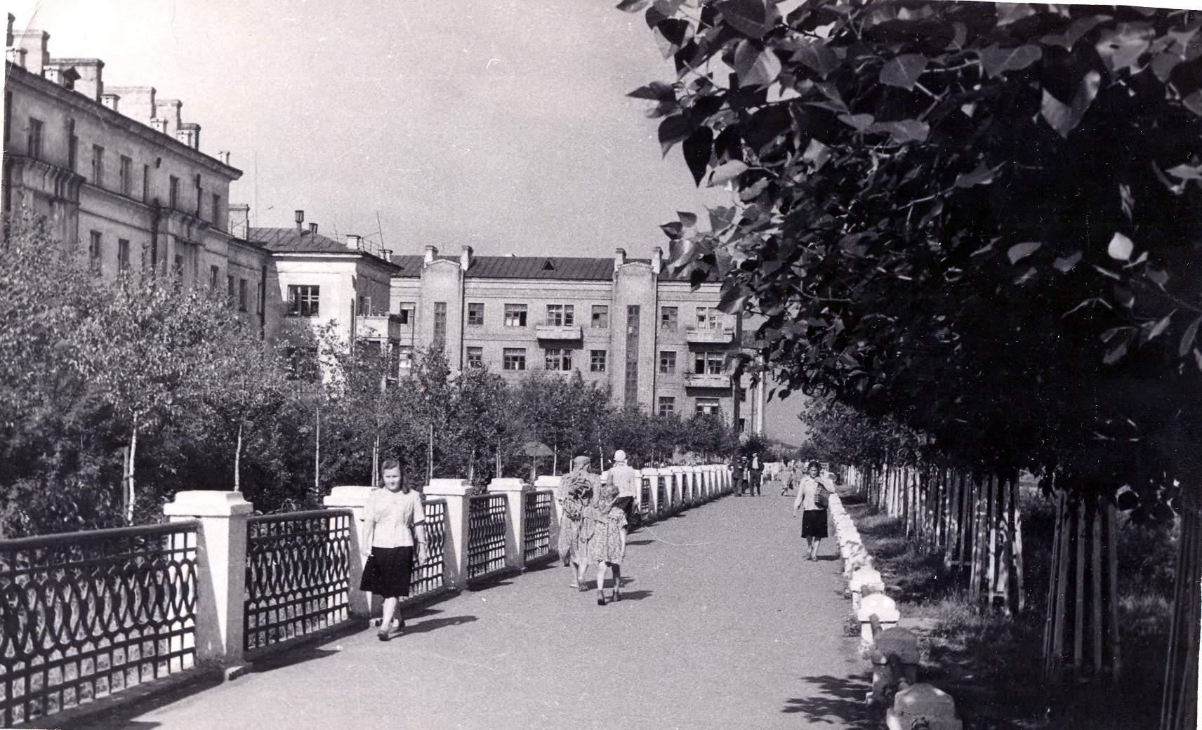 Таких зданий я знаю в Березниках только 7 - это дома на Парковой 7 и 8, и по Советскому - 21, 23, 36, 38, 40. Но дома эти 3-х этажные, а на 0277 видны только два этажа, нижний этаж скрыт возвышенностью. Этим двум условиям (архитектурные признаки и возвышенность между точкой съёмки и зданием) больше других удовлетворяют 21 и 23-й дома по Советскому. Эти дома построены в 1942 году а все рядом стоящие дома, и чётные, и нечётные, после 50-го. И возвышенность есть на линии между точкой съёмки и "нашими" домами - это место, где сейчас музей стоит. Три ряда тополей соответствуют направлению теперешней улицы Ленина, до 50-го она заканчивалась у дворца, а на месте 45-го дома было продолжение парка. И ещё одна деталь, подтверждающая мою версию - прямо по правому обрезу фотографии можно увидеть (при большом увеличении) что-то похожее на арку - это вход в парк.