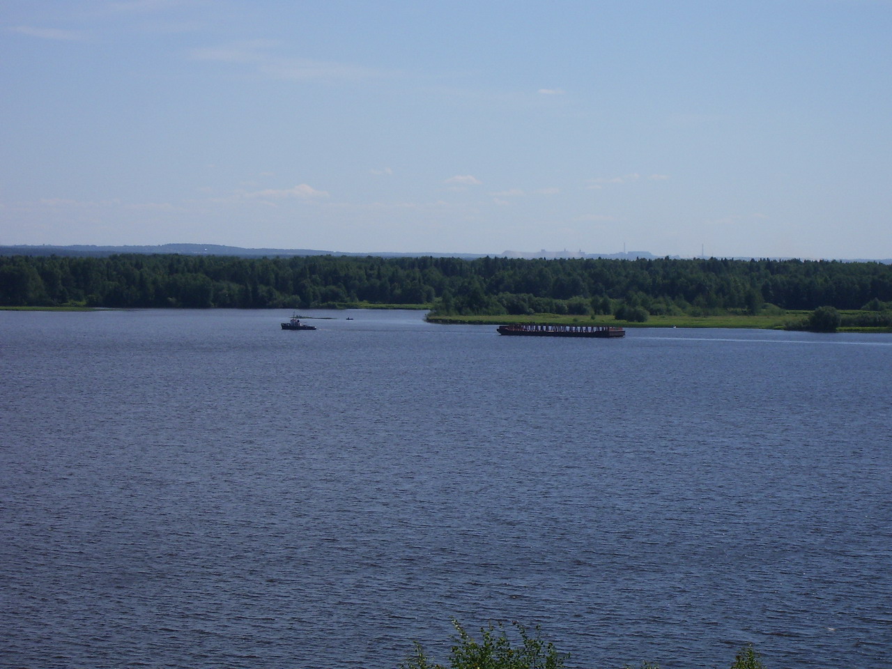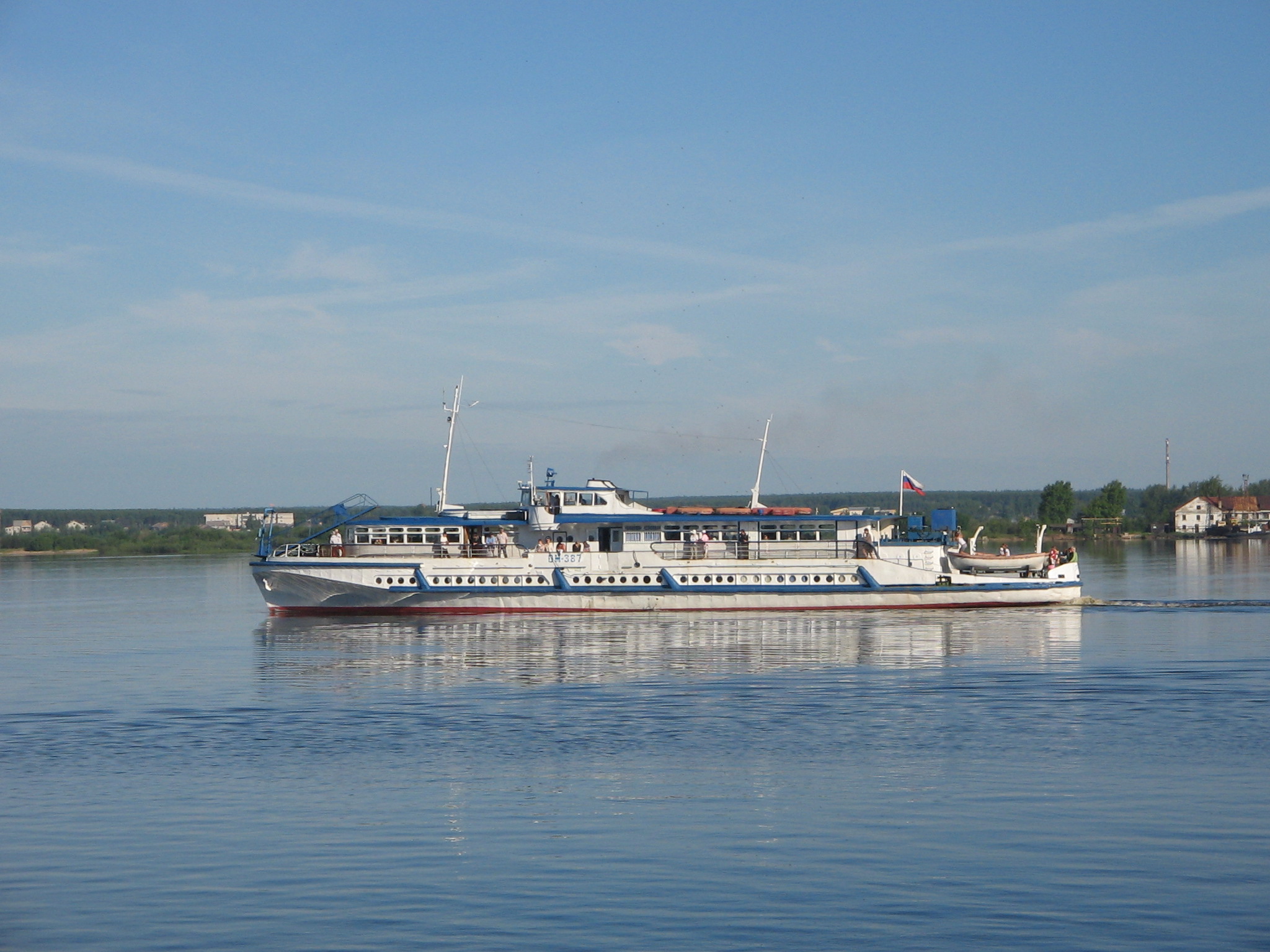 Хорошо, научат, заново отсканирую и заменю, а пока: справа внизу п/х "Роза Люксембург", над ним - п/х "Амур", а в левой колонке в середине просто написано: Вид на Каму, и там пароходик и труба дымит