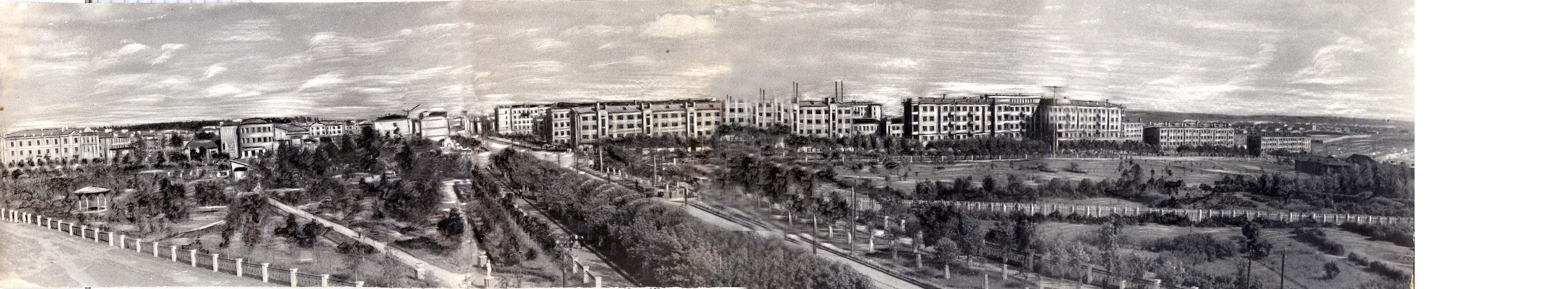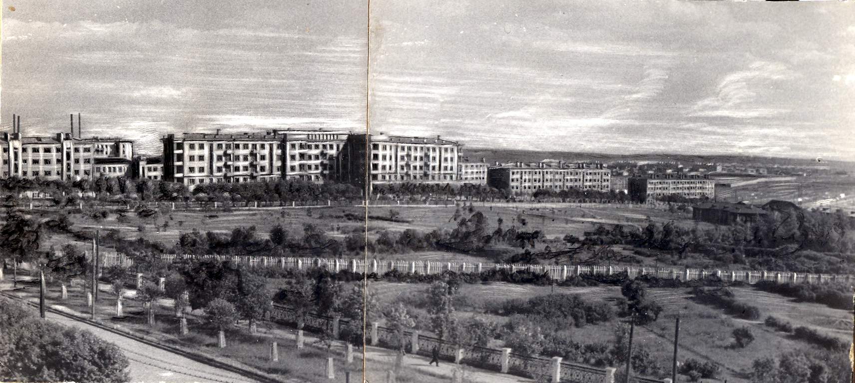 Позвольте с Вами не согласиться! Ну никак не с Индустрии 6! Думаю, krokodil ближе к истине. И, скорей всего, снимок сделан с ментовки. Вот я попробовал совместить два снимка Давида Марковича - и 250, и 251 - тут и треугольный сквер, и Пятилетки - всё уместилось. А снимки-то делались, когда ещё никакой горбольницы не было. А здания 10 и 12 по Пятилетки - так они за спиной у фотографа остались.
