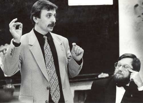22 ноября 1997 г. в г. Березники состоялся турнир по спортивной гимнастике, посвященный памяти тренера А. Какурина. На фото: (слева направо) космонавт А. Лазуткин и сын тренера В. Какурин во время открытия турнира: