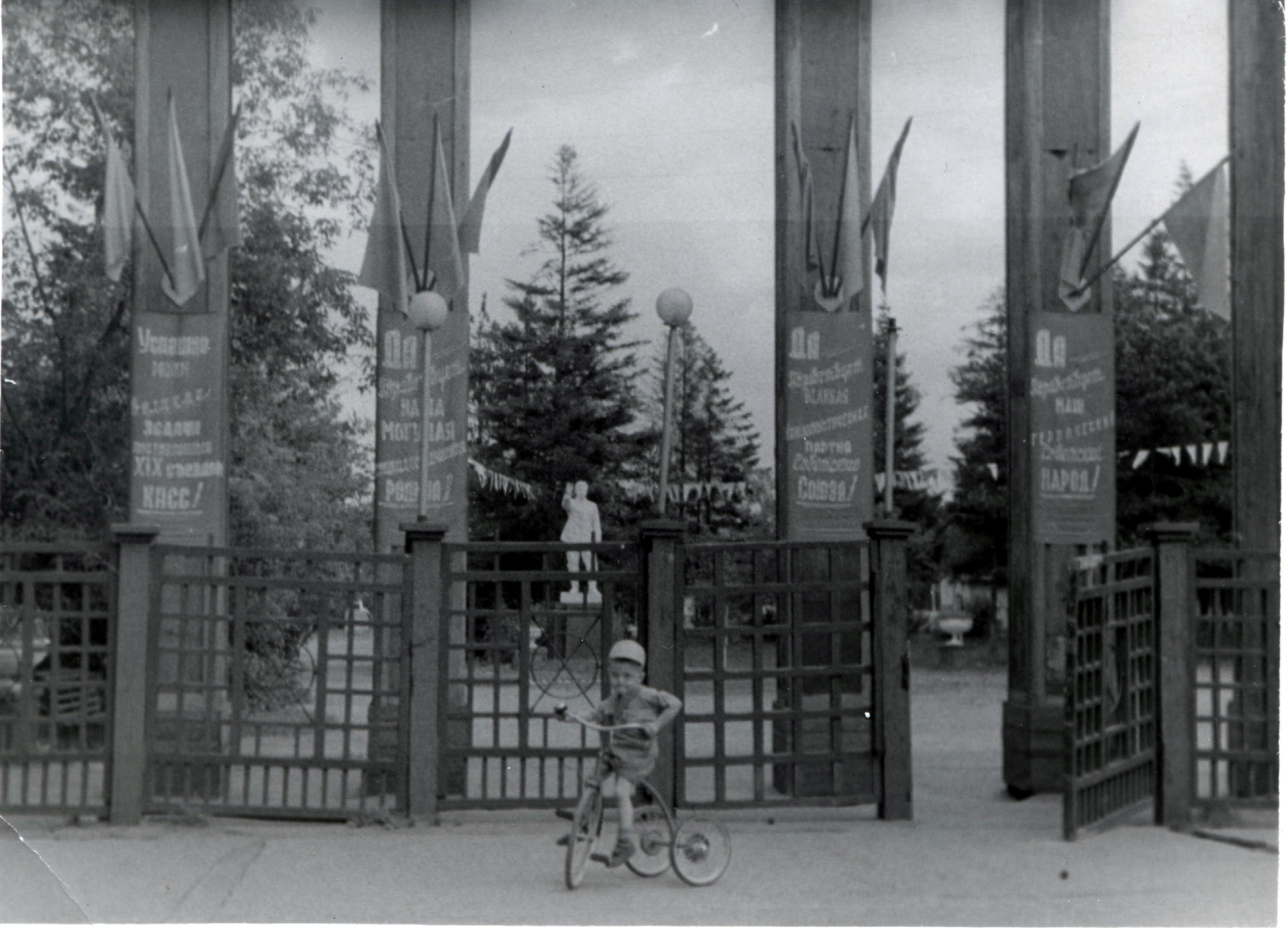 А это вход в треугольный сквер со стороны ул. Деменева. 1955 год.