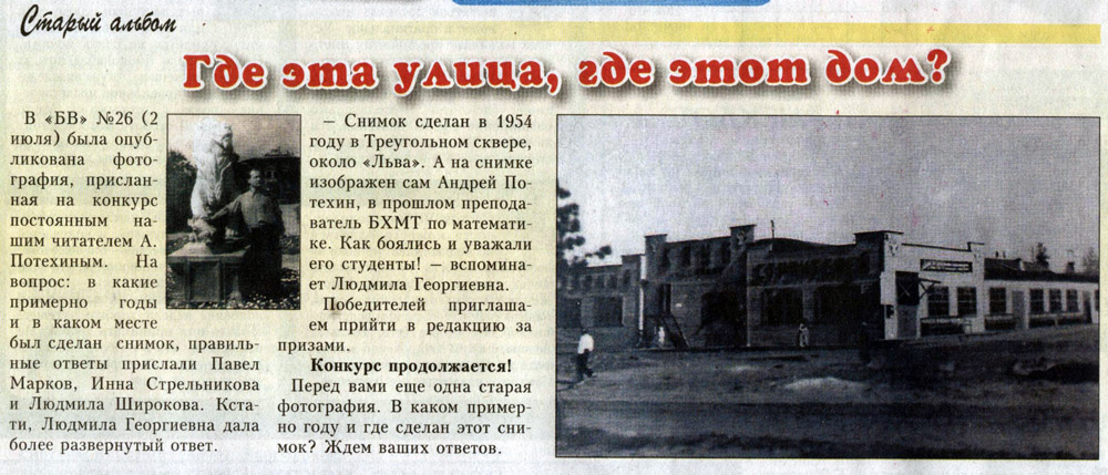 В номере 30 от 30 июля в рубрике "Старый альбом" вот такая головоломка: