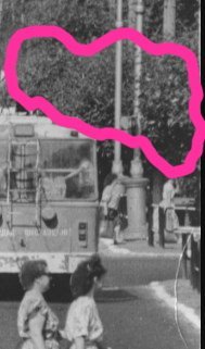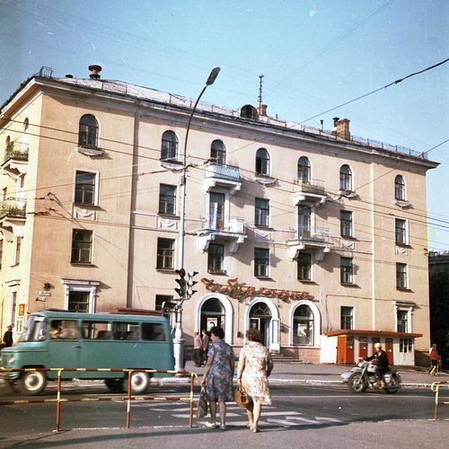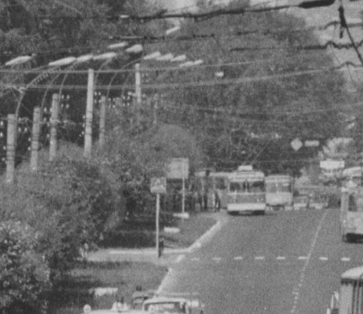 Тогда получается, что через дорогу на площадке перед комиссионкой (или что там тогда было) росли какие-то кусты? Там их сроду не было...