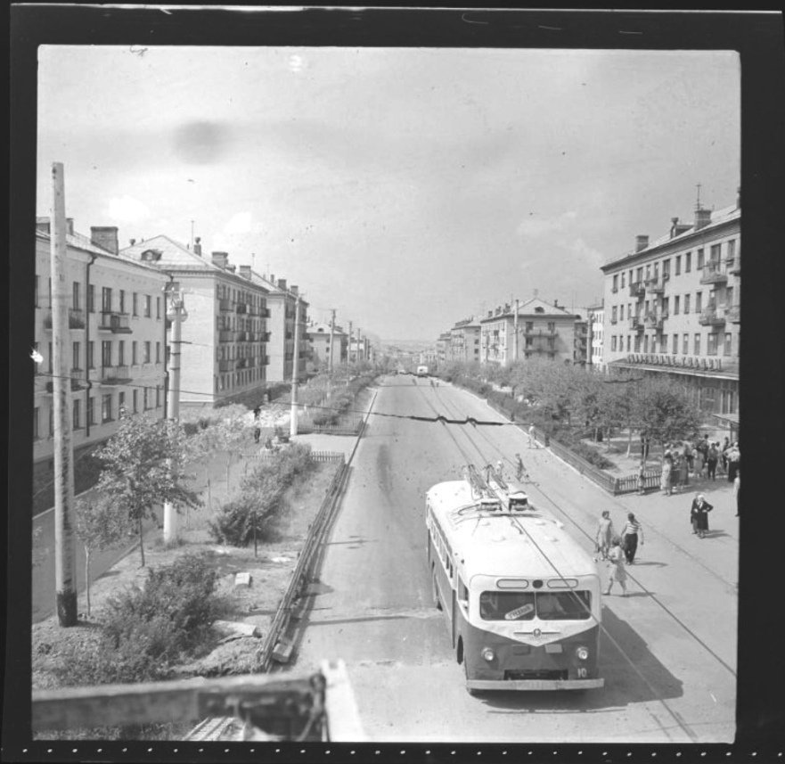 У меня нет данных, когда поменяли столбы и подвеску. Прицепиться особо не к чему. На твоем фото ещё нет букв на магазе. Но в 1962 он был уже магазом № 8 Спорттовары