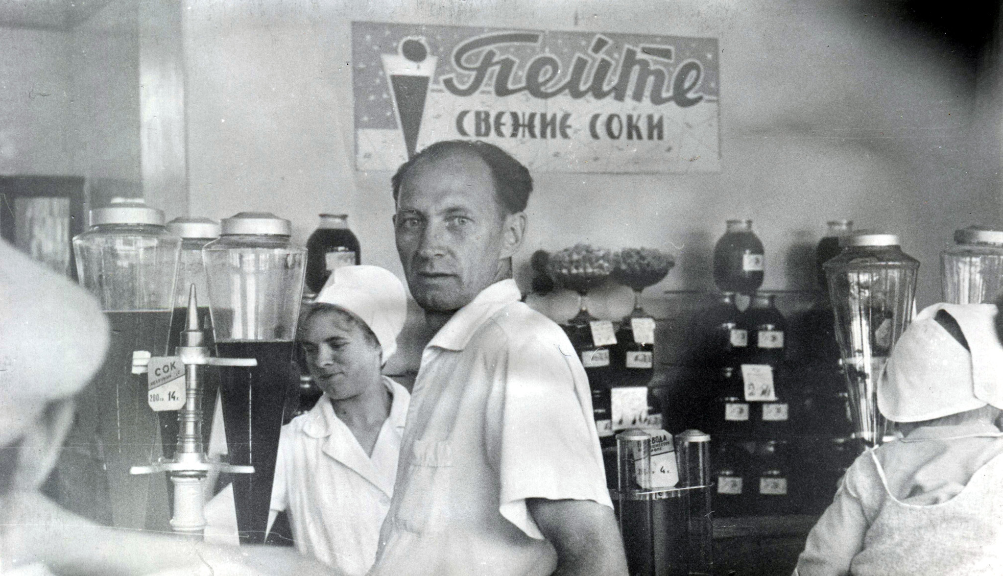 Коль про соки вспомнили из детства, вот такой снимок. Сохранилась дата - 30.06.1966, а вот в каком это магазине, не знаю.