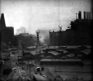 круглые штуки это да, газгольдеры самой старой модификации. Клык - это газогенераторный цех. И газгольдеры и "клык" не сохранились, сейчас их нет. А вот здание наполовину в лесах слева на фрагменте от "что это" стоит и сейчас, на крыше деревья растут O:) эстакады тоже частично сохранились. Последний фрагмент - на переднем плане небольшие корпуса, это будущий Азотхимремонт. Вообще всё старое производство азотки в развалинах, впору сталкера там снимать.