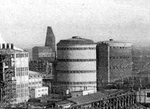 И нашёл, знаешь где? - да на том диске, в кинохронике 32-го года о строительстве Бер. хим. комбината и теплоэлектроцентрали (ТЭЦ-4). Качество этой хроники очень паршивое, но пару кадриков захватил, посмотри. Это панорама. Оператор вёл её справа налево и постепенно уходил в затемнение. Поэтому второй кадр очень тёмный. Но всё-таки очень чётко виден этот "клык". А справа - ТЭЦ. И контуры круглых сооружений видны. И даже канатная дорога видна с вагонетками от топливоподачи до котельного отделения. А каково назначение круглых сооружений на твоей фотографии - не знаю. Газгольдеры такие были? Не знаток я в хим. технологиях.
