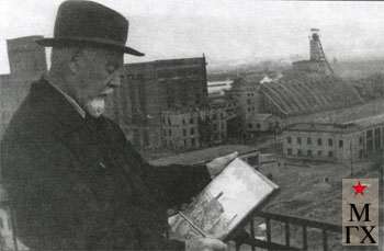 Это Лехт на крыше управления БКК расположился. А картина писана с балкона гостиницы БКК, что располагалась в доме по Ленина, 1