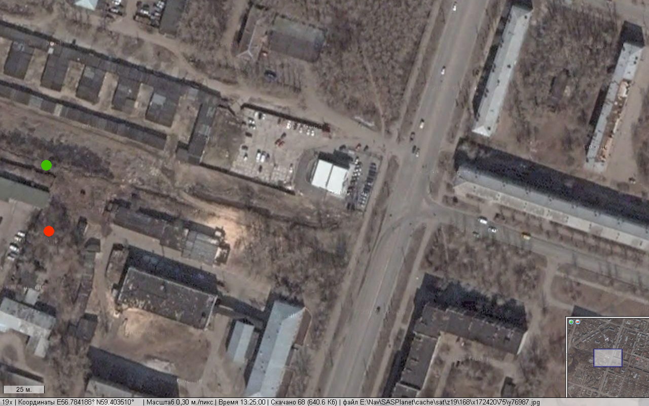 Я фоткал с красной точки(там щас куча строительного мусора). ИМХО, фотка 34 года делалась с зелёной точки.