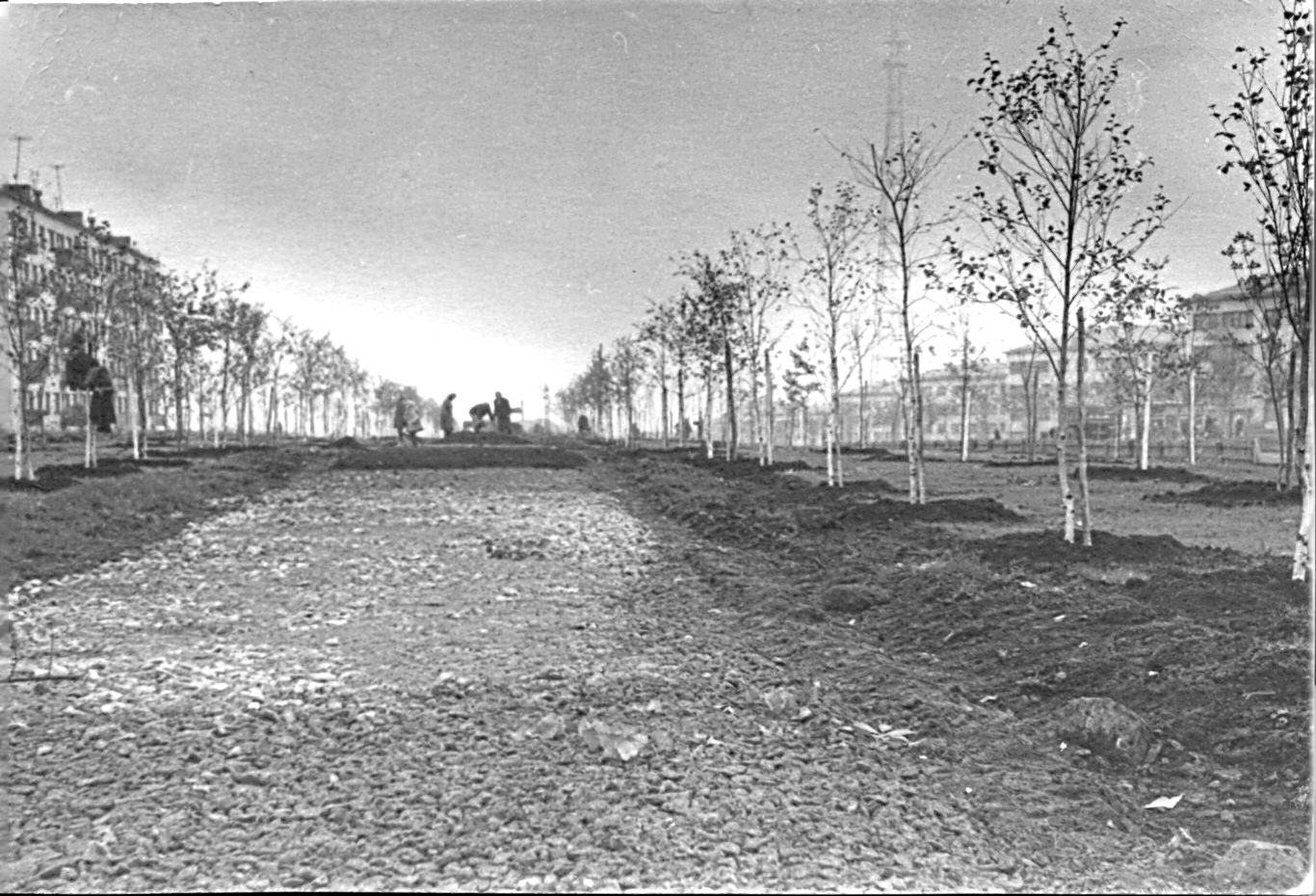 "На месте бывшего здания городского цирка недалеко от профтехучилища №8 в сентебре 1948 года начались работы по созданию комсомольского сквера".