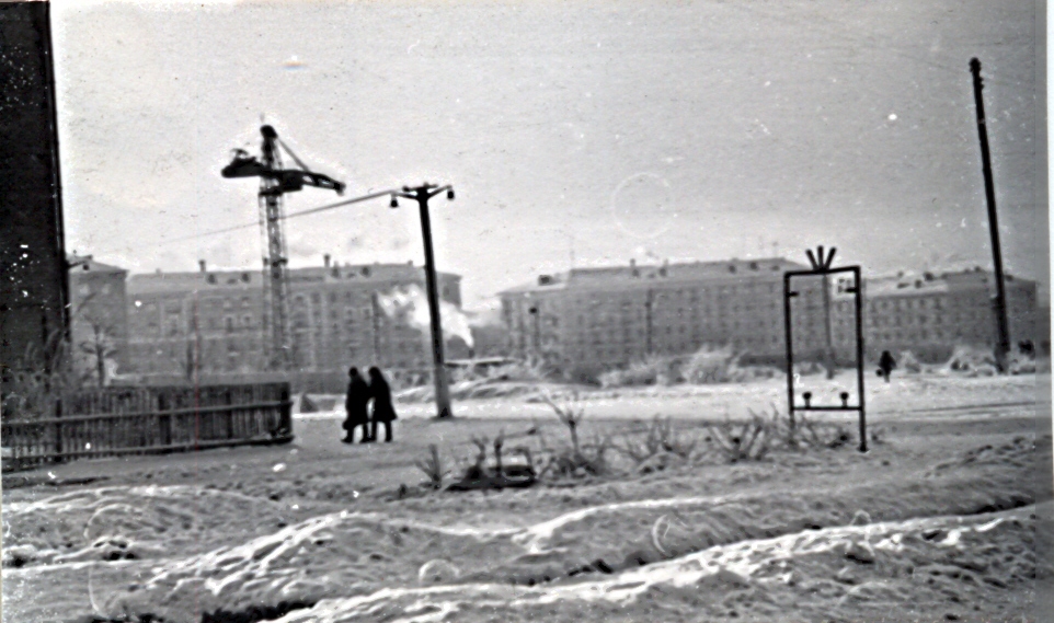 Две похожие фотки могли быть сделаны примерно на северо-восток в апреле. Здание с галереей скорее присуще калийному комбинату. Как с ними на Азотке? Слева светлая гора - может начало формирования солеотвала? И левее галереи что-то похожее на трубу. По неподтвержденным данным на БРУ-1 была своя труба. Справа здания - район нынешней площади Решетова. :|