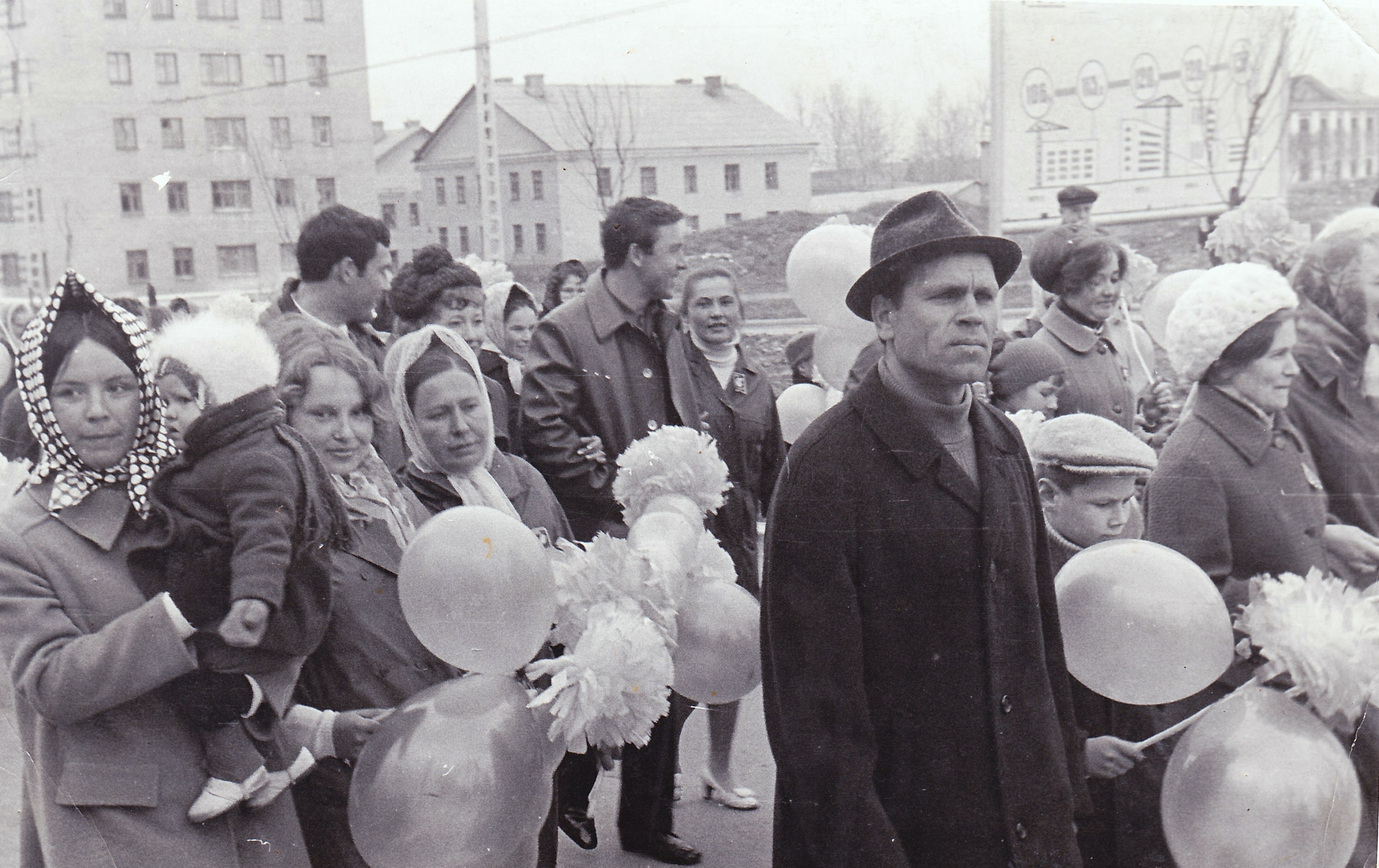 1. Июнь 1961 - это день молодёжи выходит? Куда-то собрались идти или уже пришли на стадион? Советской площади в это время ещё не было...