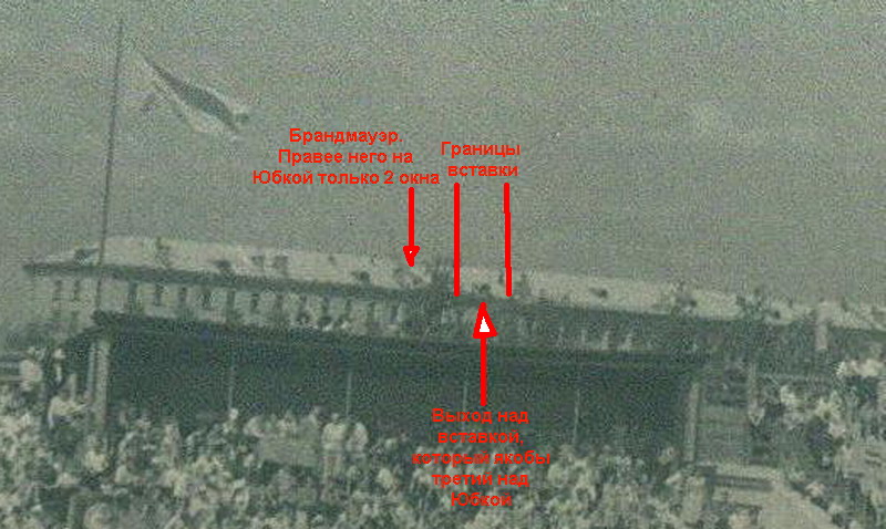Если он там был,то не мог располагаться на одной линии с двумя на предыдущем доме. Вставка глубже внутрь уходит и крыша её соответственно глубже. Выход в таком разе должен быть не на одной линии а чуть дальше(выше). Ессно-ИМХО