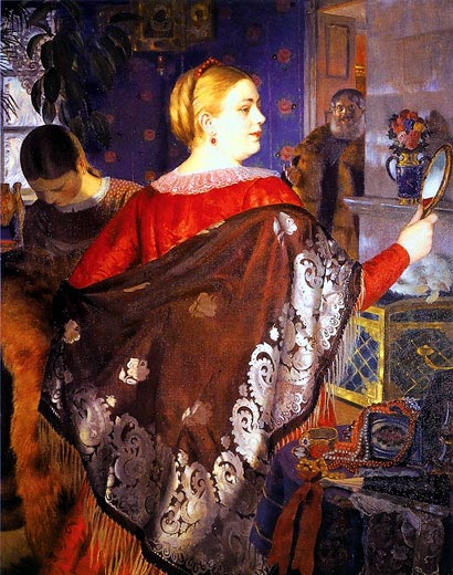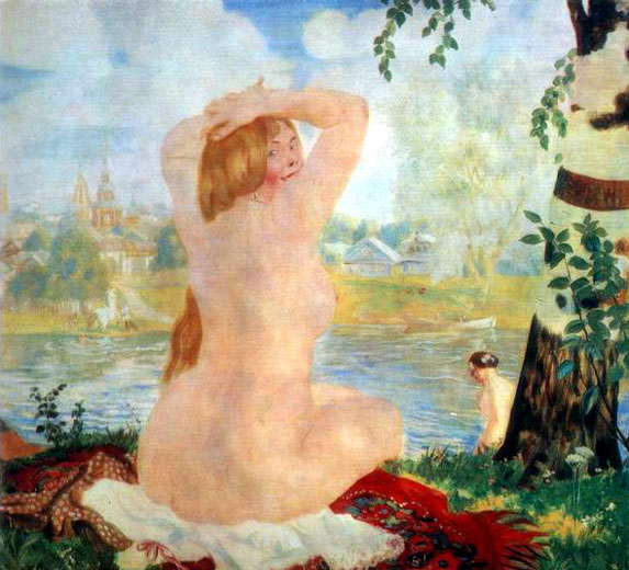 GreyBeard Опубликовано 18 июня, 2011 Опубликовано 18 июня, 2011 Лежащая натурщица. 1915. Купальщица. 1921. Бросилось в глаза что супруга художника являет собой совершенно иной типаж, нежели привычные в его творчестве многочисленные купчихи. В связи с этим подумалось,вероятно "купчиха" для него была не столько излюбленным типом женщины, сколько символом,олицетворением чего то... России? Возможно. Или - стабильности, покоя, надёжности, благополучия, (верности..., чему-то, кому-то)??? Купчиха с зеркалом. 1920.