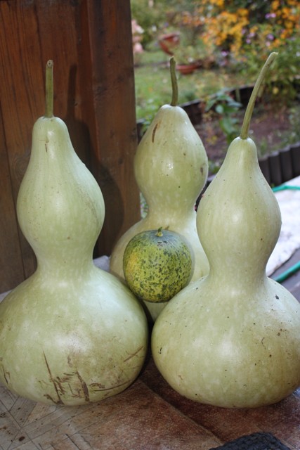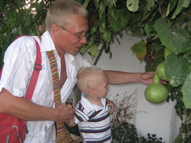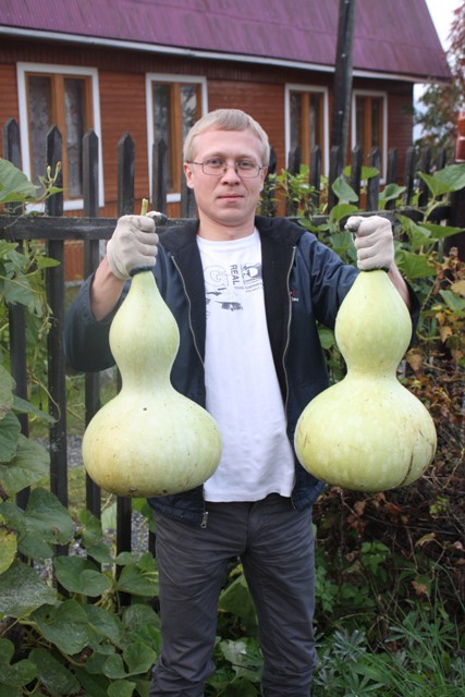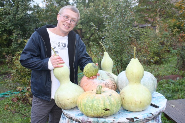 Максималист Опубликовано 12 сентября, 2012 Опубликовано 12 сентября, 2012 Любить и жаловать. Бутылочная тыква - лагенария. Большая оранжевая- мускатная крупноплодная, мелочь - дыня (одна из многих, сорт один фиг не помню). Как-то так :) Исходная, материнская лагенария, размером была совсем чуть. Щас поищу... вот она, мелочь пузатая. 7