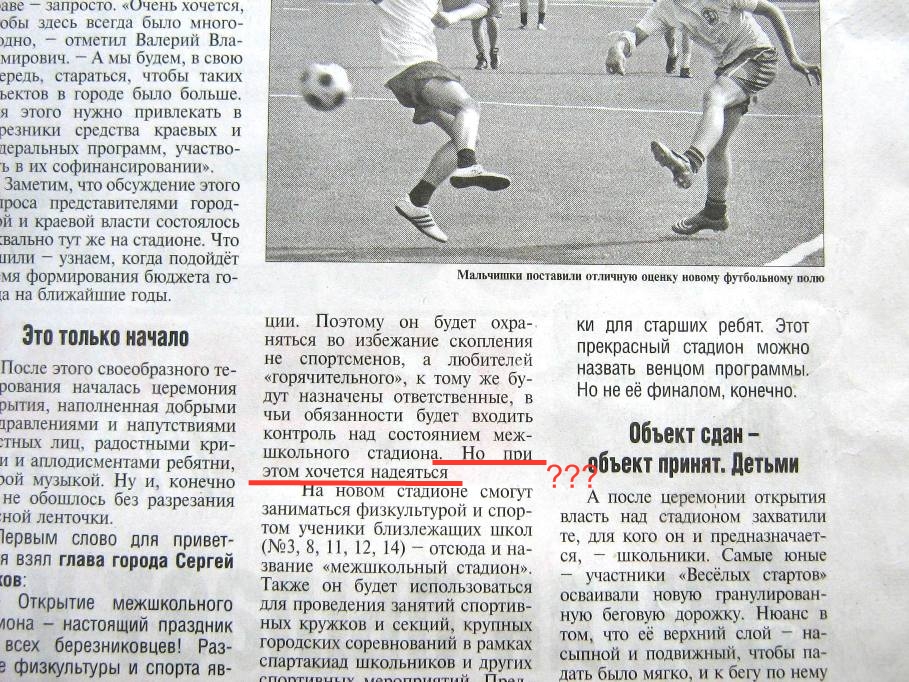 GARRY6491 Опубликовано 22 сентября, 2010 Опубликовано 22 сентября, 2010 Не буду лично в каждой газетке - валю в кучу. Поверьте - не выискиваю ошибки. Просто просматриваю на всякий случай - вдруг шифровку из Центра на заказ под видом рекламы напечатают... :-k На этот раз мишенями стали ГГ и НеРу. ГГ - кто у вас там великорусско-белорусской национальности? Акает не только на говоре, но и на письме. Ну а в НеРу точно одни дамы остались работать. Так невнимательны к футболу... :bp: И потрясающая дата выхода газеты - такие редко бывают...