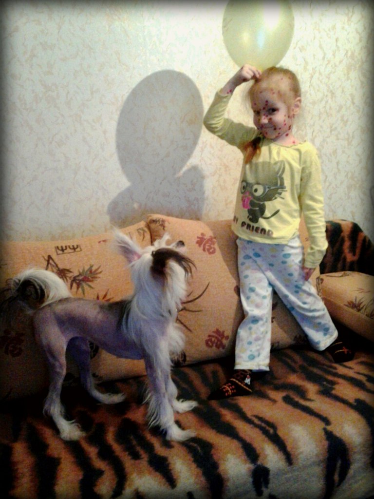 Prosto_Katrin Опубликовано 25 апреля, 2014 Опубликовано 25 апреля, 2014 В ноябре 2013 года, увидела пост о щенке китайской хохлатой и не смогла остаться равнодушной. Сейчас пёсик живёт с нами, зовут Флюк, что означает в переводе "счастливый случай" :) Первые дни он пакостил и хулиганил, метил все углы, огрызался когда дочка хотела его погладить, видимо дети раньше обижали. Сейчас они дружат, стоит мне из комнаты выйти, так тут же начинаются писки-визги, всё верх тормашками. Он стягивает с нее носки и дергает за косички)))) Очень верный и любящий пёсик! Команды не учили, но он и без этого очень умён. С того момента как забрали сразу же вылечились, занималась кожными проблемами. Стал послушным очень быстро. Изменился внешне сильно и поправился, появился мышечный рельеф, особенно на задних лапах, так как постоянно прыгает на них- это очень забавно, кстати. Допрыгивает до плеча! Когда кушать готовлю, проверяет :) Я научилась его брить и делать стрижки. Процесс ему видно не нравится, но стоит и терпеливо ждет когда я закончу. С работы встречает очень радостно, начинает играть и скакать. Муж сначала был против того чтобы я его забирала из приюта, но потом разрешил. А сейчас любит его не меньше чем я! Спит только с нами, вернее между нами, и обязательно под одеялом. Вот такое у нас дитятко! Спасибо приюту за нового члена семьи! Дай Бог, Вам, счастья и удачи! замечательная история! Парень красавец ! Вы большие молодцы, что не побоялись взять и возможно спасли жизнь. А сколько вам годков?)