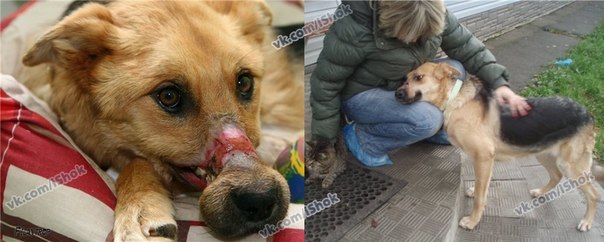 Prosto_Katrin Опубликовано 14 августа, 2012 Опубликовано 14 августа, 2012 Собачка не из друга, но тоже дворняга. Люди сволочи! Как только земля носит таких людей! У бедной собаки морда была перемотана скотчем так, что сгнила до кости. ЕЕ хотели сперва усыпить, но потом решили попробовать помочь. Собаку положили на капельницу. Ни капли мочи, не работают почки, похоже у нее еще и переломы лап. Как сказали, собака находится в "полукоме", почти ни на что не реагирует. Т.е. помимо всего прочего, сильная интоксикация организма из-за отказа почек. Все будет зависеть от того, получится ли их запустить. Пока даже не до челюсти. Рот открывается на 1-2см. Сварили бульон, развели жиденько послеоперационный корм, немного покормили. Она ест! И в благодарность пытается махать хвостиком...... Врач плачет. Много кормить нельзя, нельзя вызвать рвоту, она просто захлебнется. В следующий раз покормят через 2 часа. Врачи говорят, что собака необыкновенная. При всем, что с ней случилось, она очень доверчивая, она смотрит так, как будто хочет сказать "помоги мне". Через полгода, собачка почти выкарабкалась. Пришлось делать пластическую операцию - человеческий хирург проникся ситуацией и сделал бесплатно. Клиника, в которой она живет, тоже за полгода не взяла ни копейки.