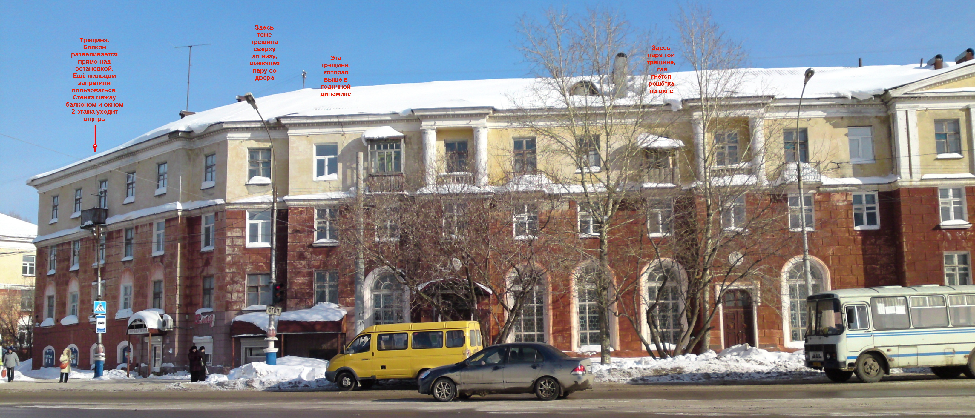 jimm031 Опубликовано 8 марта, 2010 Опубликовано 8 марта, 2010 (изменено) jimm031, спасибо за фото. Судя по фото, за год трещин больше не стало. Ну да, именно эта трещина(над Владом) год как стоит. А вот на 4 фотке стенка над окном 3 этажа проваливается вовнутрь. Решётка заметно прогнулась. Вообще этот дом ломается на несколько частей, т.е. есть трещины на площадь и напротив со двора. Обе трещины на фотках имеют пары. Изменено 8 марта, 2010 пользователем jimm031