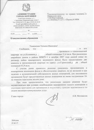 N.T.V. Опубликовано 20 июля, 2010 Опубликовано 20 июля, 2010 Хочу поднять свой вопрос: Ситуация следующая: нас переселили с рудника в Мотовилово, временно (о чем есть бумажка), обещали поселить в 10-этажку после окончания строительства (О чем есть бумажка), квартиру №21 нам выделили господин Чиркунов и госпожа Лебедева о чем сделали запись у себя в журнале (у нас бумажки нет), сейчас в "нашу квартиру" заселили Свердлова, 122. Что дальше делать непонятно. В суде сказали: делать нечего, ждите может в следующую 10-этажку вас поселят. Дурдом какой-то. В краевом комитете по правам человека говорят что наши права нарушены, а дельного предложить ничего не могут! В картонном домике прописано двое детей, один из которых пока посещает шк.14, но оттуда выгоняют, т.к. он прописан на правом берегу. Второй грудной младенец. Вот все имеющиеся на данный момент документы: