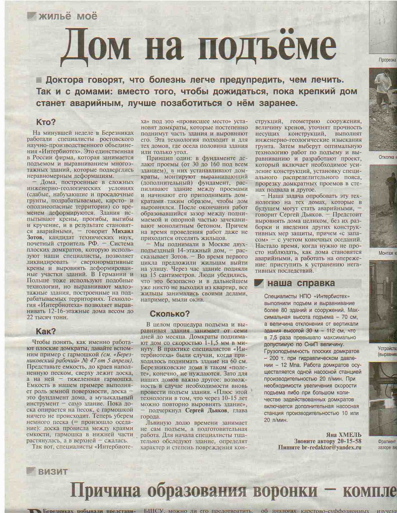 check Опубликовано 26 мая, 2011 Опубликовано 26 мая, 2011 Отрицательный опыт это что? Не падало ли здание во время подъёма? Или не осаживалось ли оно обратно? Уточните, что вы имеете ввиду. Кто ж им верит? Не знаю. Лично я жизнерадостным березниковским калпульным СМИ не доверяю.