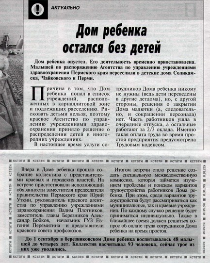 WestUralMonitor Опубликовано 15 сентября, 2007 Опубликовано 15 сентября, 2007 Статья в "Березниковском рабочем" от 13.09.2007 в которой не указан адрес Дома ребенка. Кто знает о каком здании идёт речь?