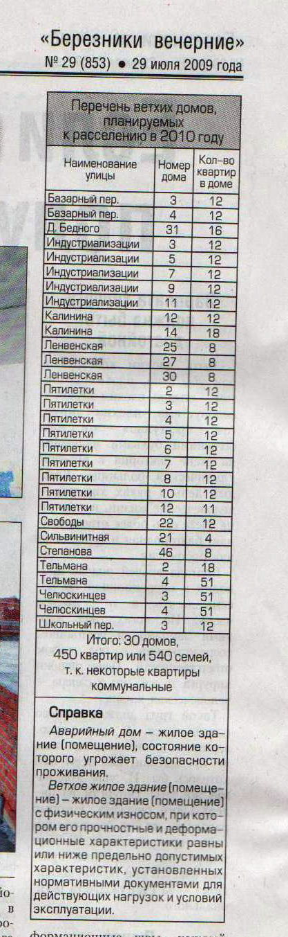 Coolikoff Опубликовано 29 июля, 2009 Опубликовано 29 июля, 2009 вчера на "астере" два весельчака обсуждали статейки в местных газетах и сказали, что в газете "березники вечерние" напечатан список домов, планируемых к расселению... кто-нибудь может обнародовать этот список здесь?