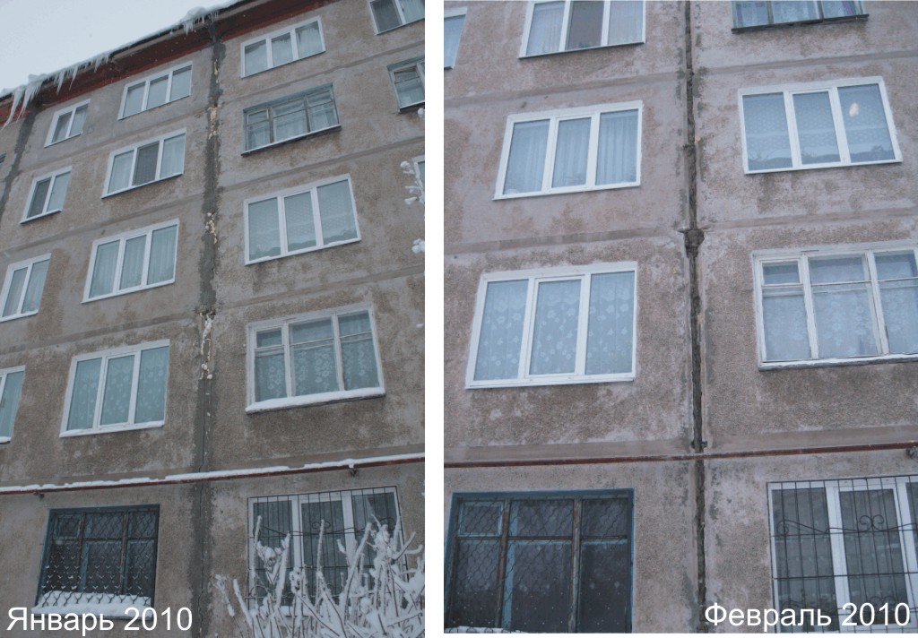 check Опубликовано 25 февраля, 2010 Опубликовано 25 февраля, 2010 Бесплатного, разумеется, ничего не бывает. Все юрконсультации бесплатны лишь для населения; юристам их оплачивает Пермский правозащитный центр. Далее поехали. Потёмина 2. Разница между снимками около месяца. Трещину посередине дома разделали, утеплили, по-видимому, тряпками. Может зашьют металлическими листами, как на Мира 29, 31. Процесс идёт....