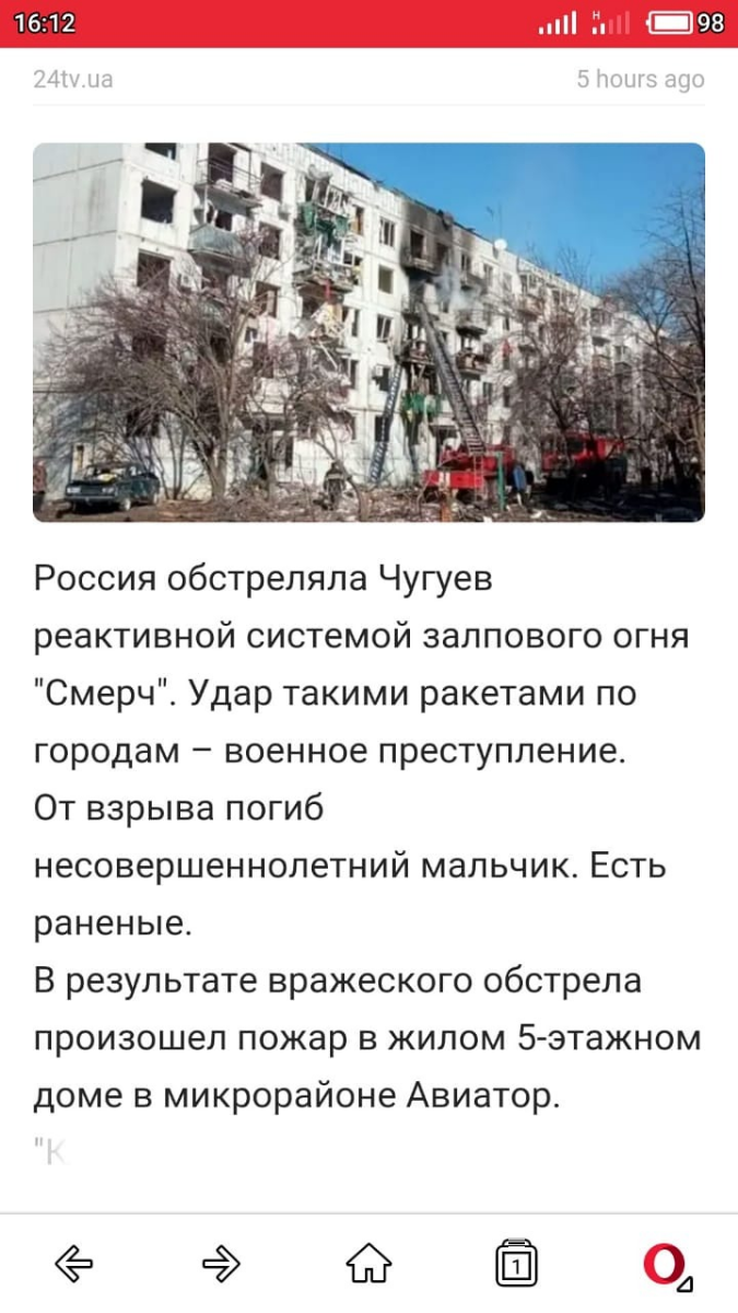 Дядя Серёжа( Геннадич) Опубликовано 24 февраля, 2022 Опубликовано 24 февраля, 2022 Всем, здарова! Бывший сослуживец, на вопрос - Как у вас обстановка? скинул по Ватсап. Понимаю, их СМИ могут и дезу пустить, собственно говоря, так же, как и наши. Верить или нет? - Сергей, я живу в Харьковской обл., сегодня рано утром был обстрелян ракетами пригород Харькова, разрушен учебный аэродром в г.Чугуев и в г.Конотоп. ВС РФ перешли границу в районе Путивля/Сумская обл./, но там их остановили уничтожив 6 БТР и вертолет К-52, эти регионы не имеют никакого отношения к Донбассу.