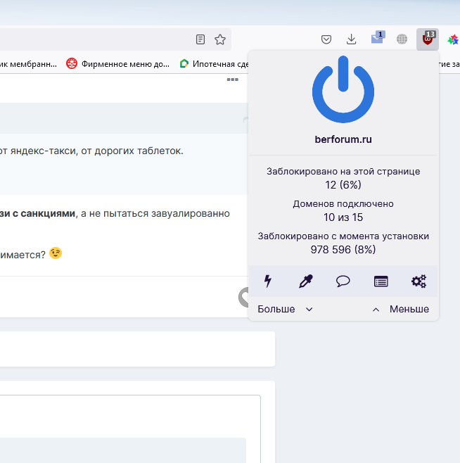 jimm031 Опубликовано 12 марта, 2022 Опубликовано 12 марта, 2022 Только что, autor59 сказал: uBlock Origin хорошо работает ща попробую Ага работает. А то уже на Берфоруме стали белые окна(видимо Гуглреклама, которой теперь нет) появлятся.