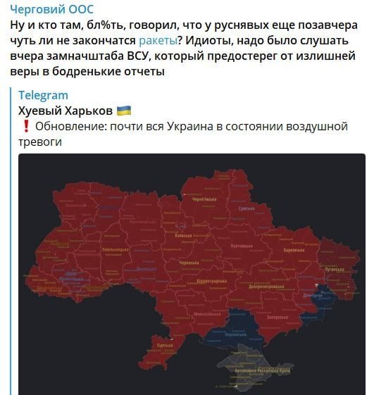 surger1984 Опубликовано 26 марта, 2022 Опубликовано 26 марта, 2022 5 часов назад, Караванщик Али сказал: Вариант - применение в боевых условиях не принимается? Или обязательно корабль вражий ждать? Эти ПКР можно применять по радиоконтрастным целям на земле. Но это все таки противокорабельная ракета. 5 часов назад, jimm031 сказал: вроде не впервые. хотя если именно калибром, то возможно Видел видеоролик какого-то украинского селюка - там летела такая ракета с крылышками, типа Х-101. Стратегические ракеты в ход пошли. 1