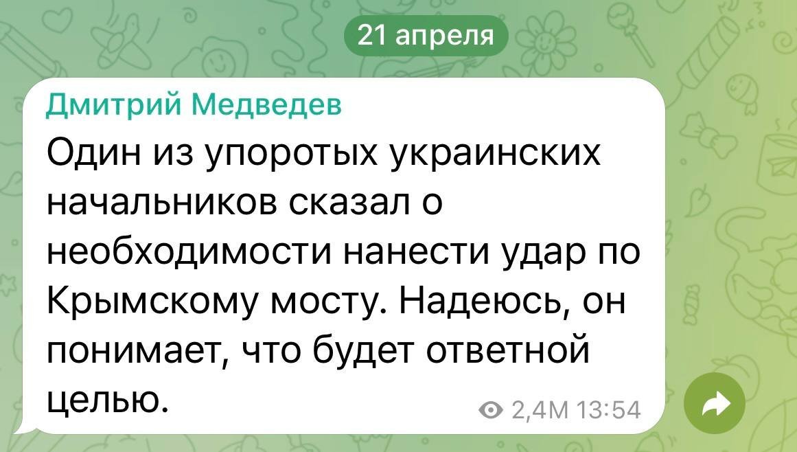 argonaut Опубликовано 8 октября, 2022 Опубликовано 8 октября, 2022 150 миллионов человек очень хотят узнать, не пришло ли время упоротому украинскому начальнику понять, что будет ответной целью. 1 1