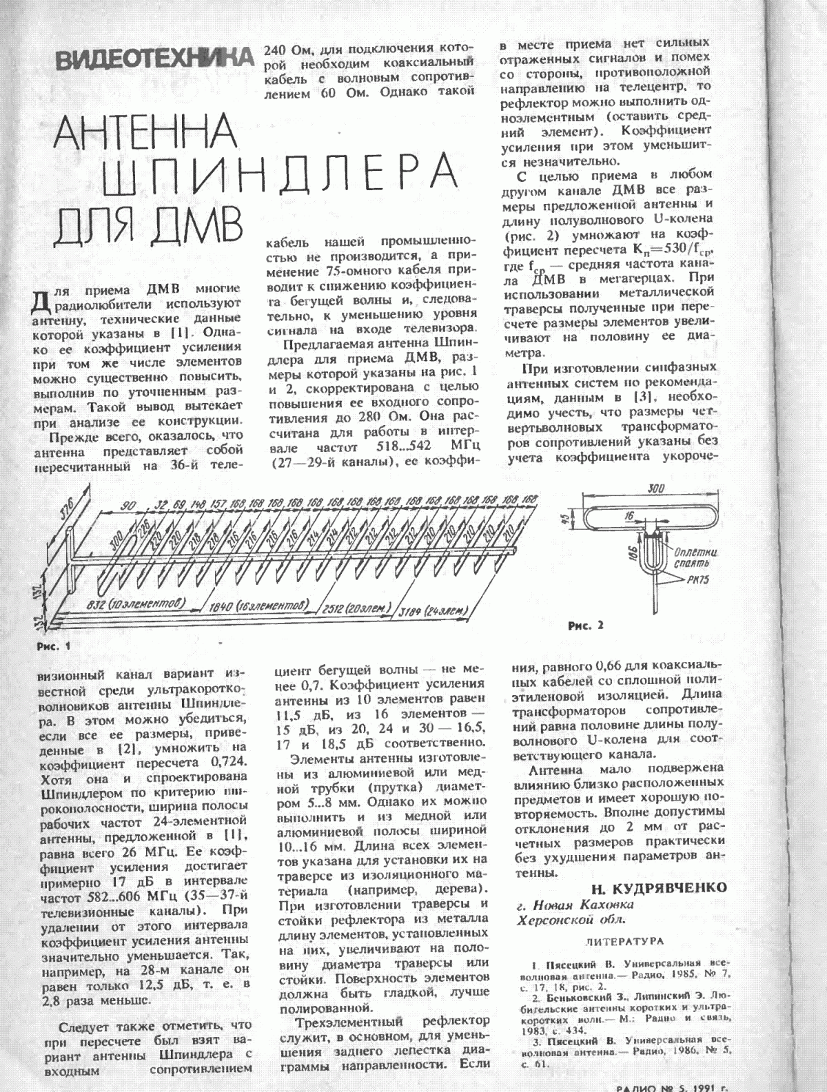 SOLYRIS Опубликовано 19 мая, 2015 Опубликовано 19 мая, 2015 Дельта широкодиапазонная антенна - захватывает и метровые и дециметровые волны. Если я не ошибаюсь, в Березниках оба мультиплекса вещаются в диапазоне ДМВ - тут можно что-то попроще (или ту-же Дельту без "усов"). Проще не получится. Нужна антенна остронаправленная с узким лепестком,желательно одноканальная. Если кто желает изготовить антенну самостоятельно, могу посоветовать антенну ШПИНДЛЕРА. Это антенна волновой канал довольно узкополосная. В старые времена изготовил штук 50 этих антенн на 25 канал , пользовалась большим успехом. Данные размеры антенны на 26 - 28 канал. Расчёт на другие каналы в журнале " РАДИО " № 5 за 1991 год , стр 36. Чем длиннее полотно , тем уже полоса антенны и больше усиление.