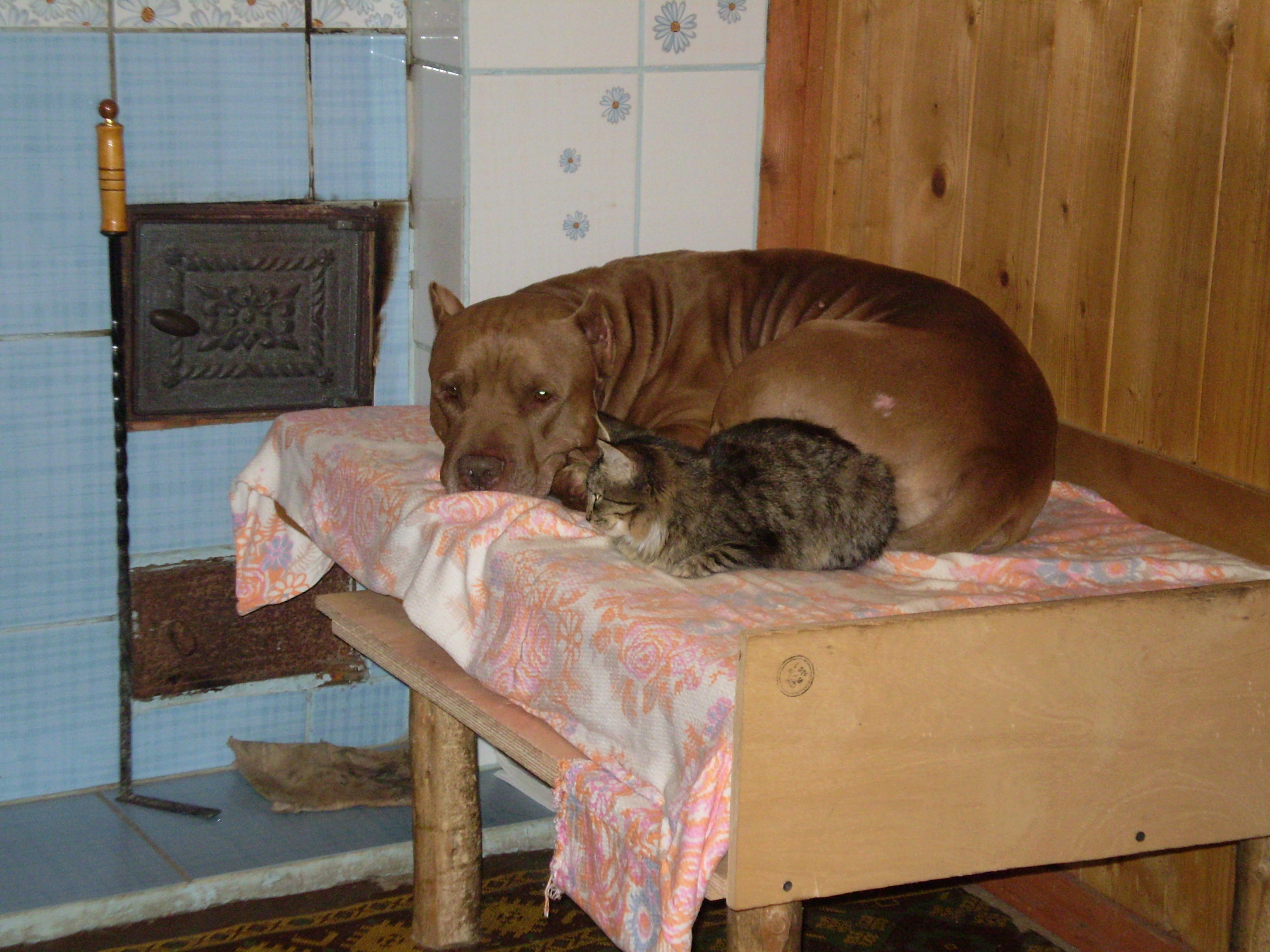 N@tk@ Опубликовано 6 декабря, 2010 Опубликовано 6 декабря, 2010 А у меня живет 9 год американский питбультерьер Карим и осенью подобрали котенка - назвали Котей-Котофей.